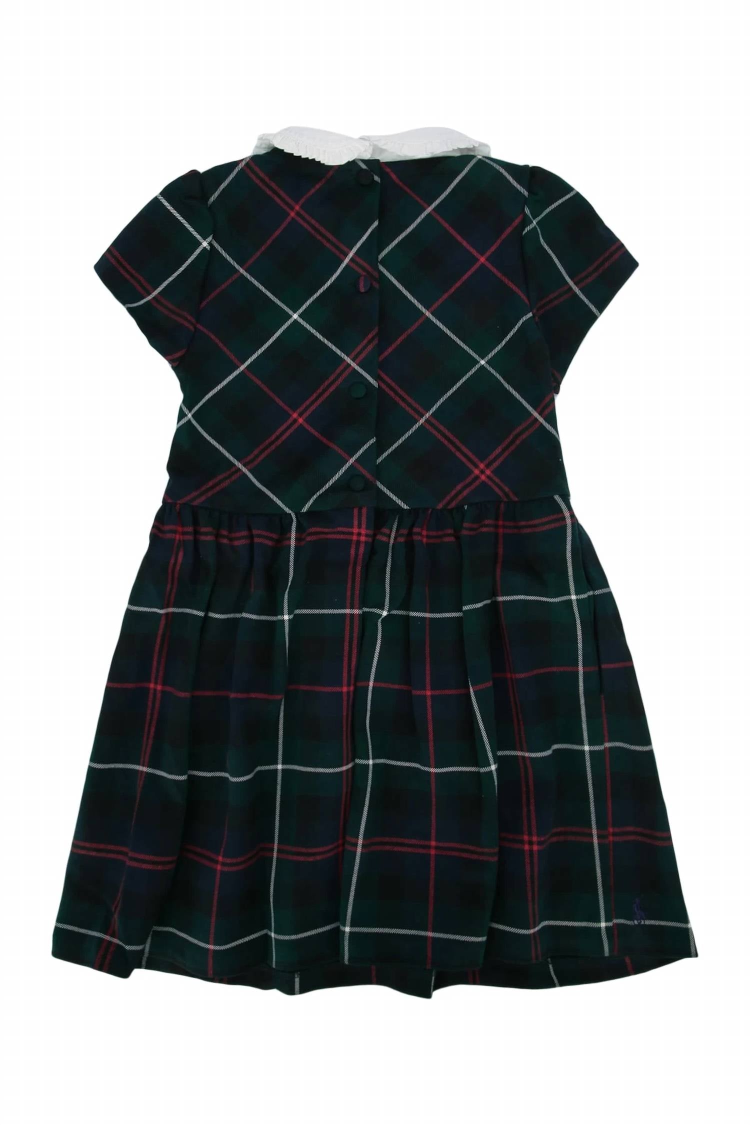 Presenting the Polo Ralph Lauren Girls Plaid Ponte Dress, a delightful addition to any casual wardrobe in vibrant green. This dress is crafted from a fabric composition of 69% polyester, 29% viscose, and 2% elastane, offering a slightly stretchy feel for comfort and ease. Featuring a back button closure and made in Indonesia, it embodies quality and style. Care instructions: Machine wash at 30 degrees.