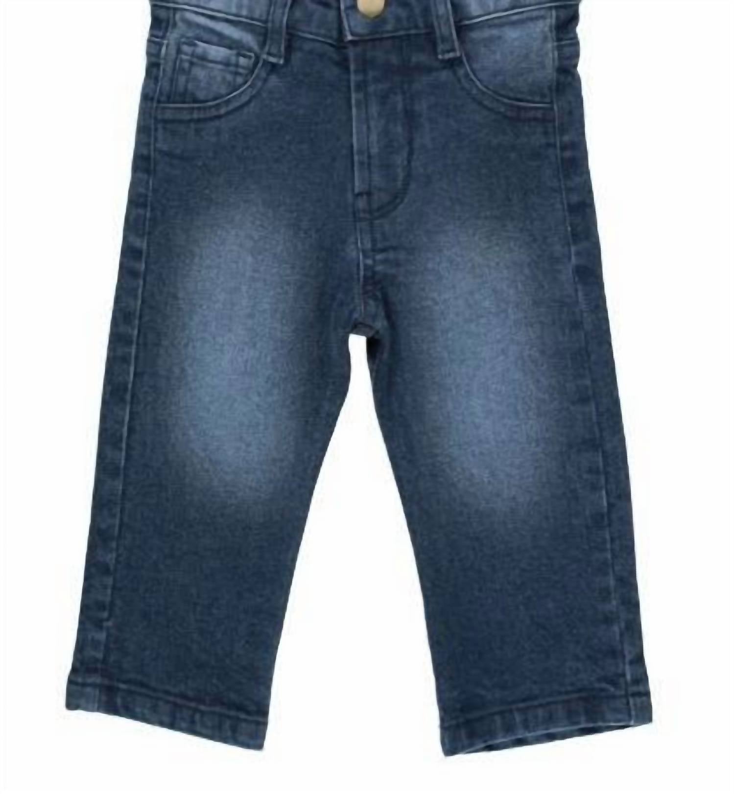 Introducing the Boys Rugged Straight Jeans by RuffleButts, designed for little adventurers who crave both style and durability. These medium wash jeans feature a textured pattern that effortlessly complements any occasion, from playground fun to family outings. Perfect for boys, these jeans offer comfort and rugged charm all in one stylish package. Made without specific care instructions, they're easy to incorporate into your child's wardrobe.