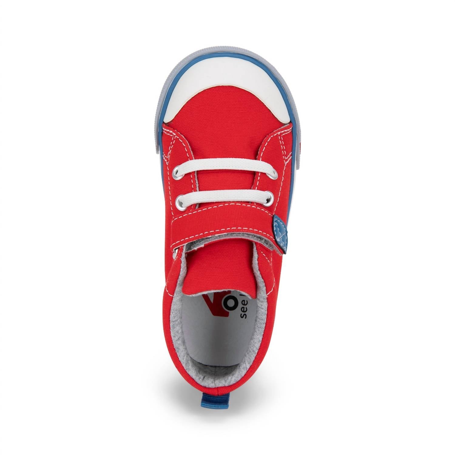 Introducing the Boy's Stevie Sneaker by See Kai Run, a fan-favorite best-seller perfect for the active little one. With vibrant red and blue colors, this sneaker features a durable rubber outsole with a herringbone lug pattern ensuring excellent traction. The hook and loop strap with faux elastic laces provides a secure fit and custom adjustability, complemented by a classic fit allowing for foot growth. This sneaker is awarded the Seal of Acceptance from the APMA, making it an ideal choice for back-to-school and summer activities.