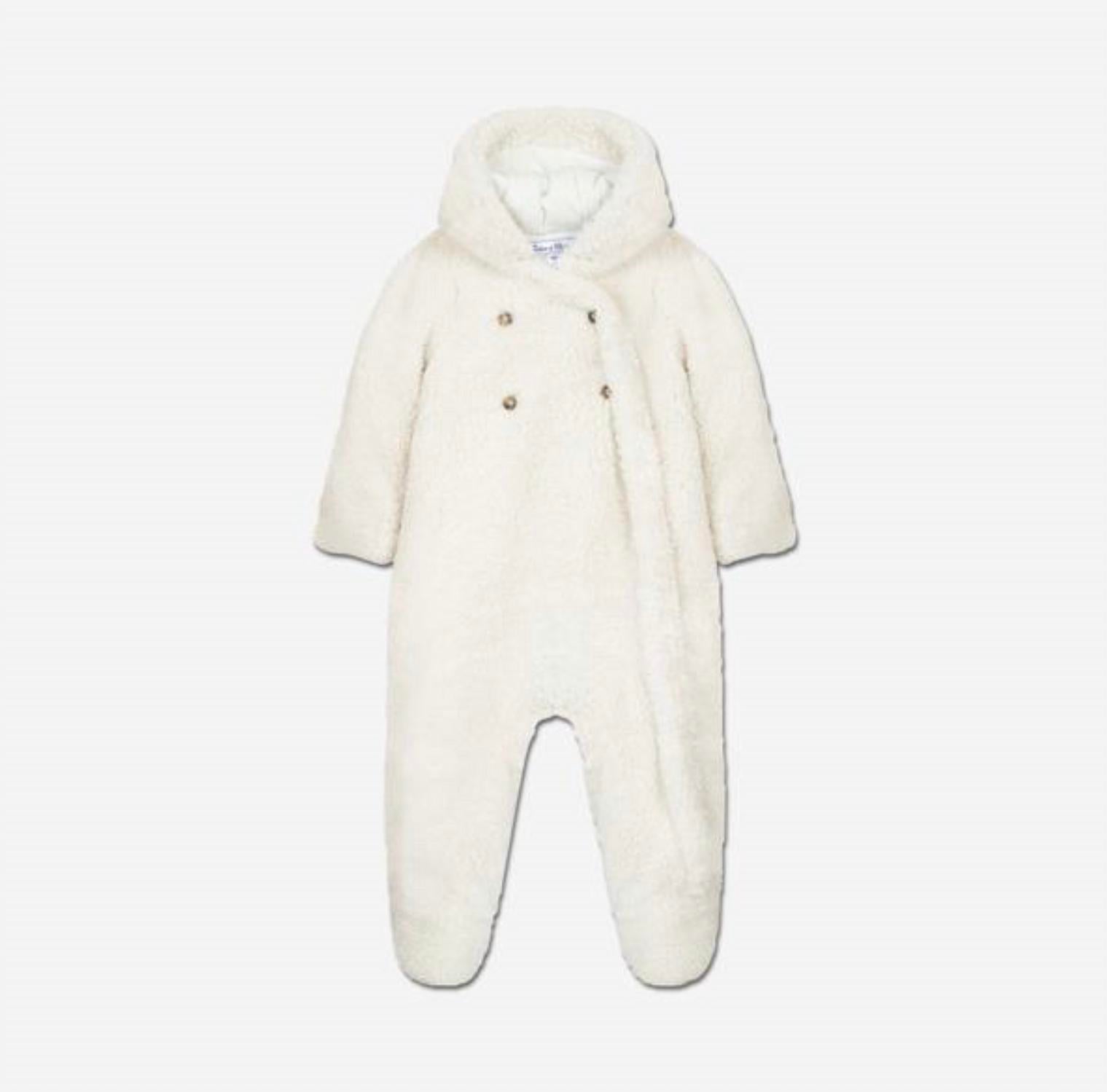 Wrap your baby up in this wonderfully cozy bunting. This faux fur hooded onesie is soft and warm, and easy to put on with snaps at the side. Main material: 100% Polyester, Lining: 100% Cotton.