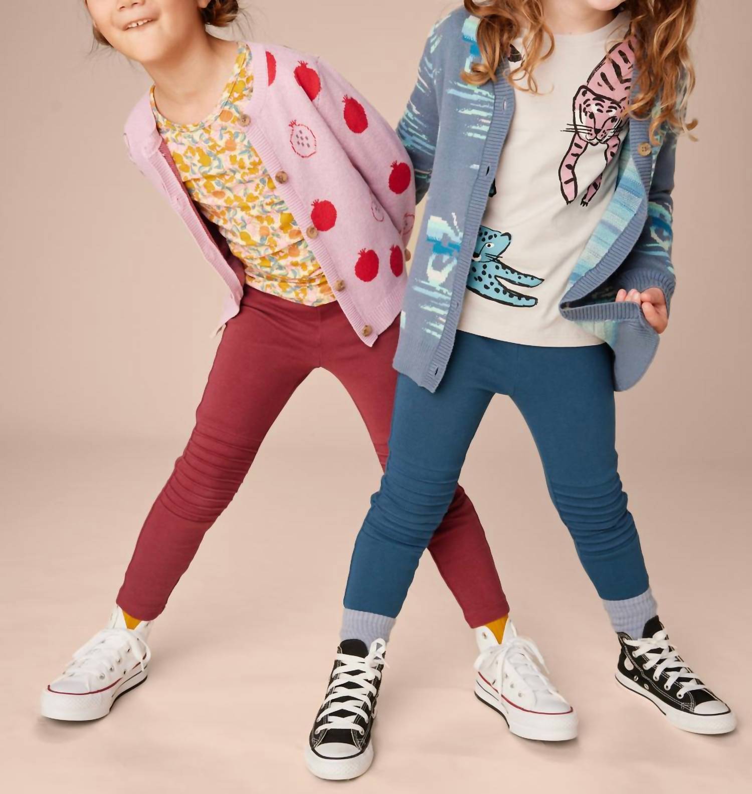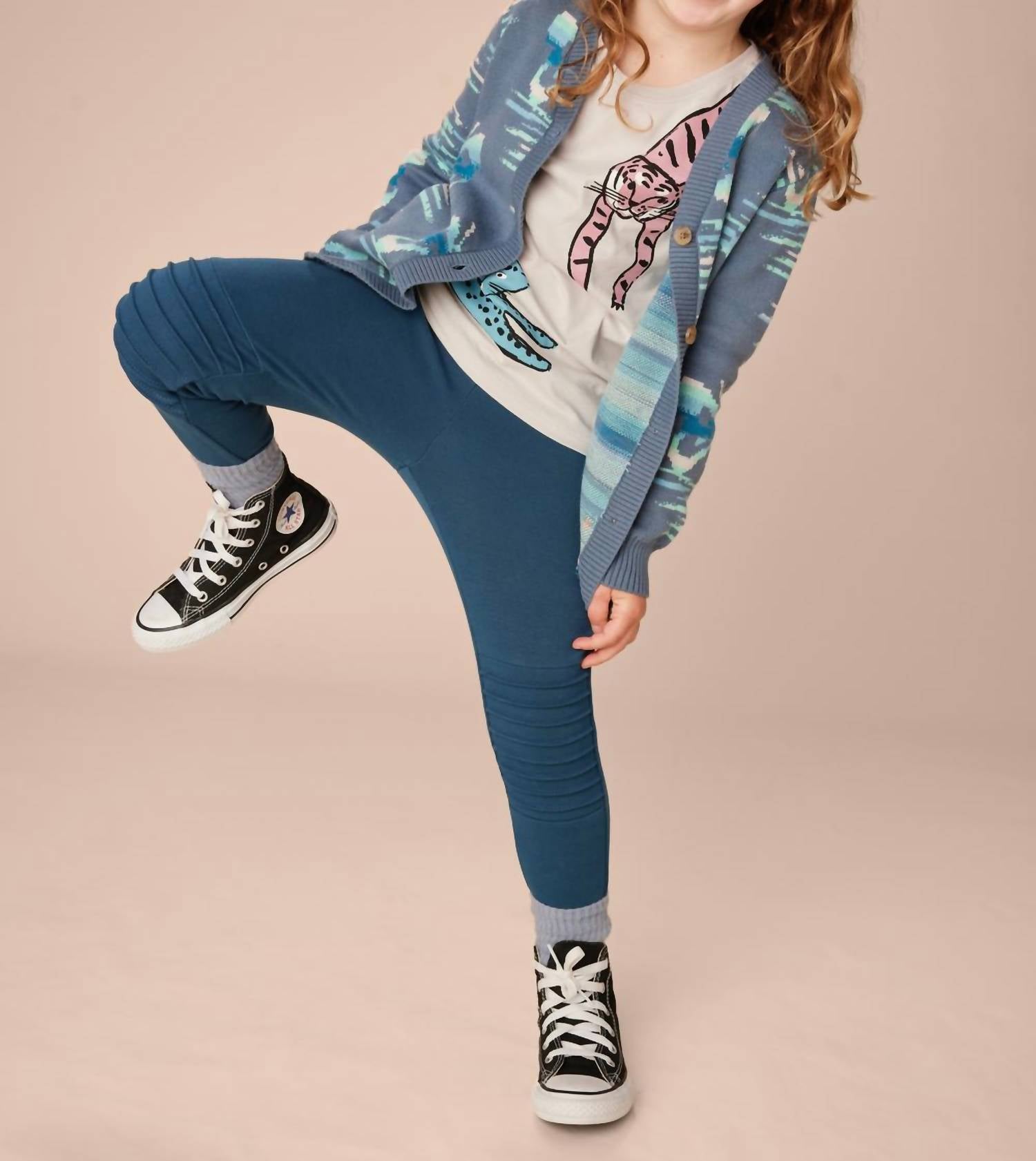 The Tea Collection Speedy Style Moto Pants in Bedford Blue are a must-have for cooler weather. These textured leggings feature an ankle length and a practical elastic waist, crafted from a comfortable cotton blend of 98% cotton and 2% spandex. Designed with ribbed detailing at the knee, they are imported and emphasize durability with lined knees. Care: Machine wash. Perfect for the back-to-school season and embracing the athleisure trend.