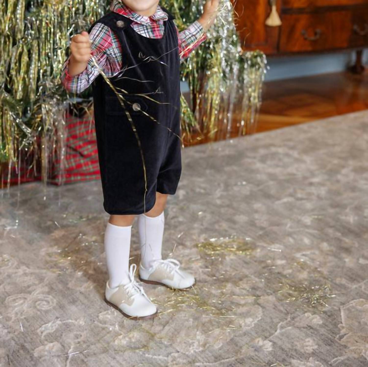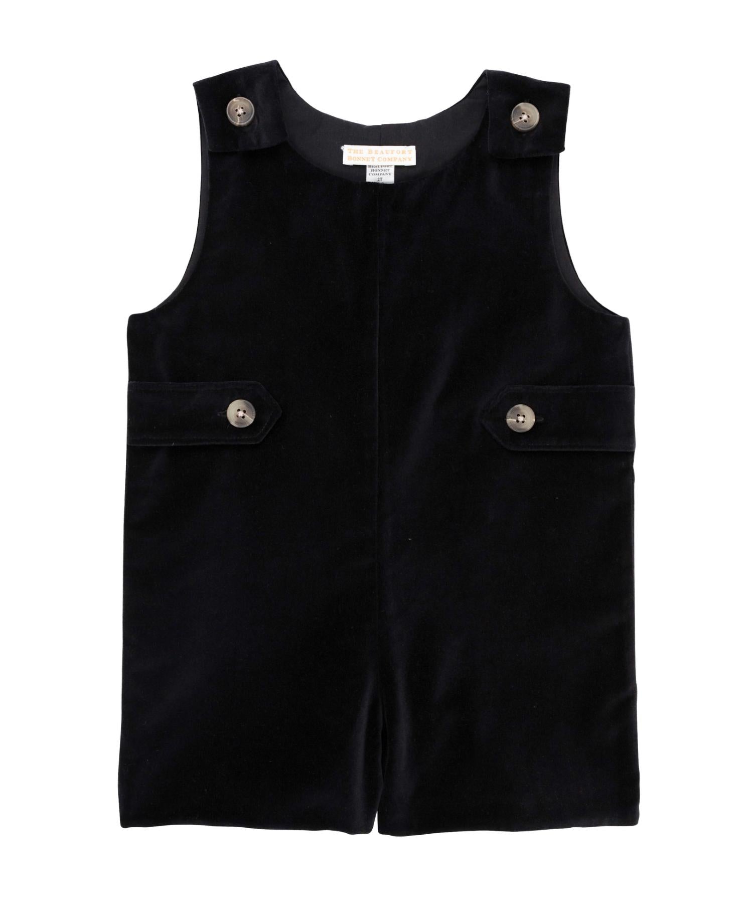 Introducing the Boy's Jack Keene Jon Jon Velveteen Romper by The Beaufort Bonnet Company, crafted to add charm to your little gent's wardrobe. This romper is made with 100% cotton and features a fully lined interior of 60% cotton and 40% polyester, ensuring comfort and durability. It is designed with buttons on the sides and shoulders, snaps at the legs, and adorns classic tortoise shell buttons for a touch of elegance. Care is simple with machine wash cold on a gentle cycle; tumble dry low and cool iron as needed. Ideal for dapper seasonal outings, especially during fall and Christmas church gatherings.