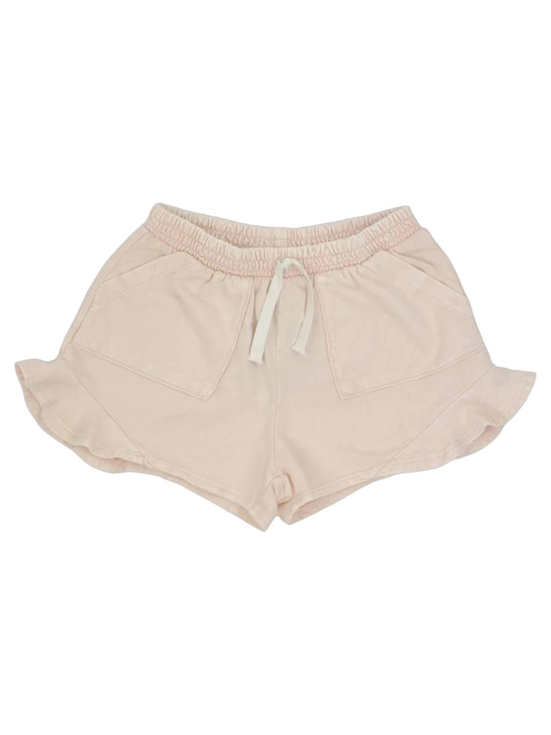Introducing the Tiny Whales Pink Skies Butterfly Short, a delightful addition for little girls this summer. These shorts, presented in a charming mineral faded pink, feature a textured pattern with a cute ruffle hem for a boho chic vibe. Crafted from 100% cotton, they include a faux drawstring for added style and are preshrunk for convenience. Care instructions: Machine washable for easy maintenance.