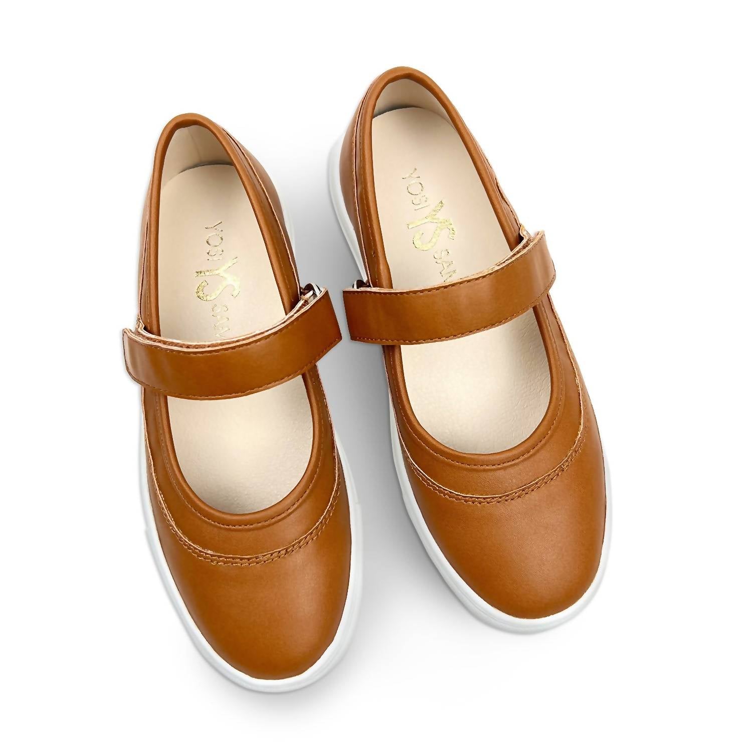 Introducing the YOSI SAMRA Kid's Miss Adeline Slip-on Shoes, the perfect blend of style and practicality for the little one's wardrobe. These chestnut Mary Jane slip-ons feature a durable PU upper with a synthetic lining and sock, complemented by a convenient velcro strap for easy wear. They boast a cushioned memory foam footbed and a TPR outsole, ensuring comfort and flexibility. Designed for girls, these sneakers are ideal for toddlers, seamlessly combining fashion with the needs of an active lifestyle.