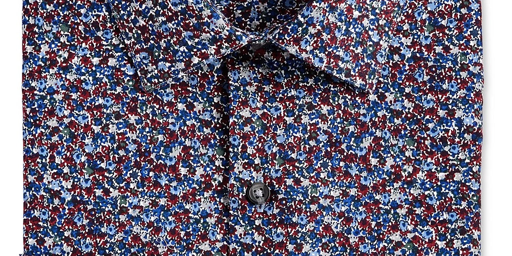 A slim fit is cut closer through the chest, sleeves and waist; features slim armholes and sleeves|Spread collar|Button cuffs|Floral-print pattern|Stretch performance