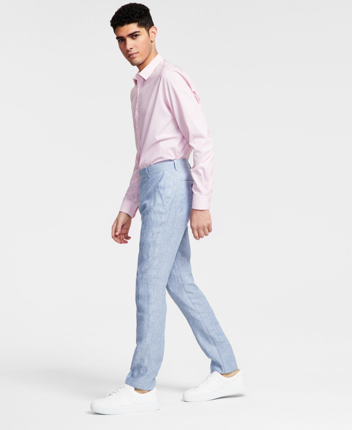 Bar III Men's Slim Fit Linen Suit Pants Blue Size 33X30
