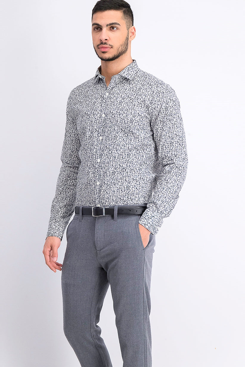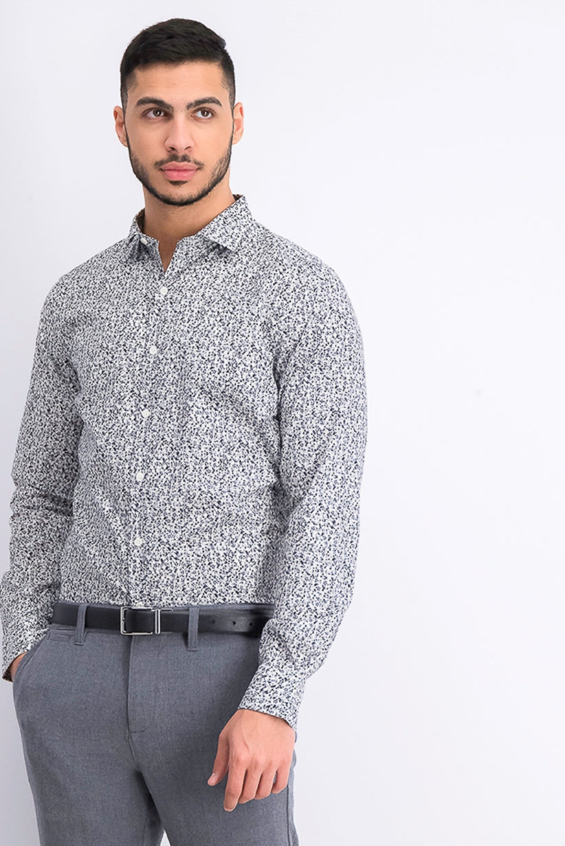 A slim fit is cut closer through the chest, sleeves and waist; features slim armholes and sleeves|Spread collar|Button cuffs|Floral-print pattern|Stretch performance|All cotton