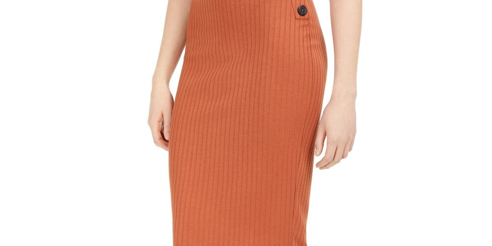 Approx. 29" long; Fitted midi silhouette|Pull-on styling; elastic waistband|Ribbed knit; side button details|Polyester/rayon/spandex