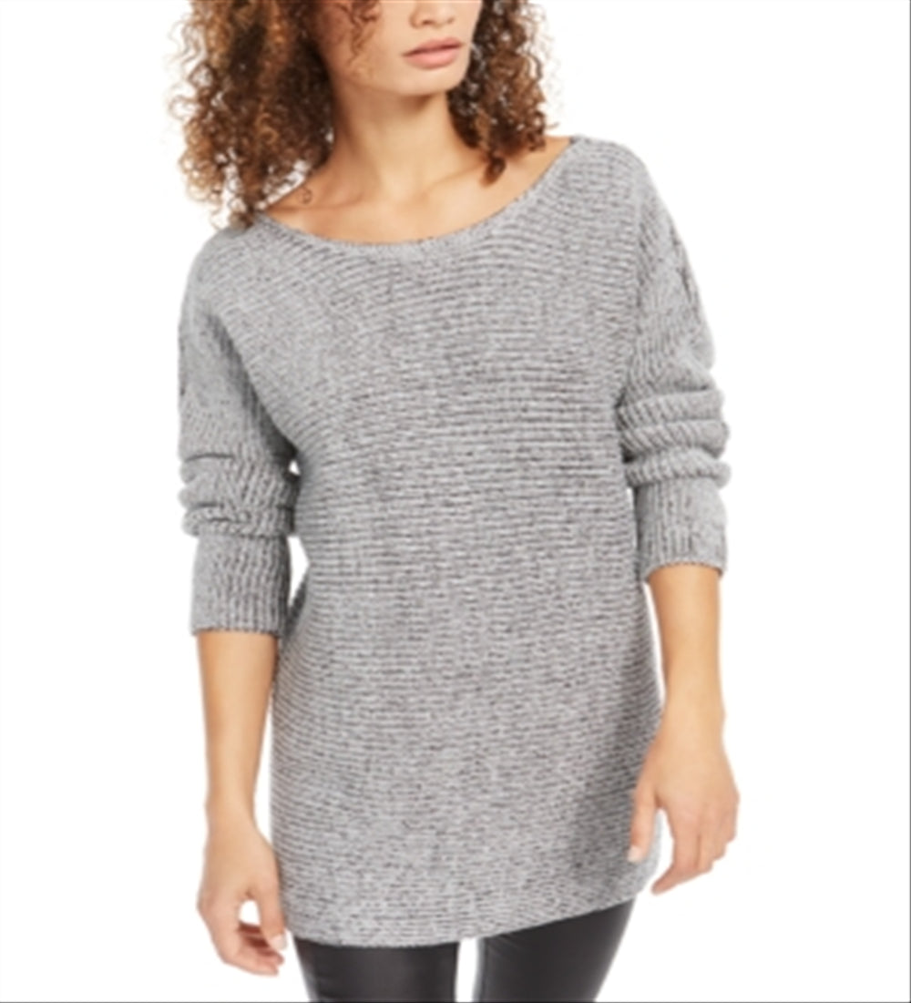 Bar III Women's Crisscross Back Tunic Sweater Gray Size XXS