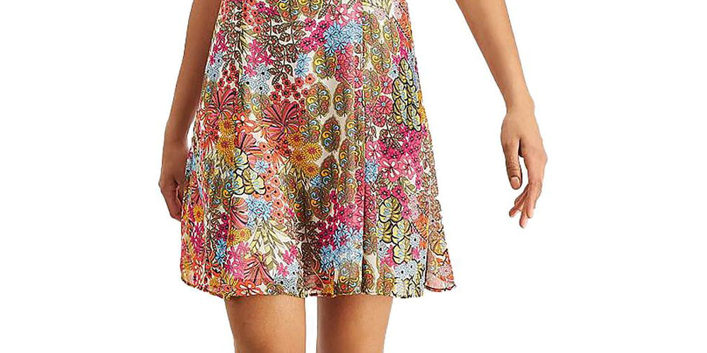 Bar III Women's Floral Mini Fit & Flare Dress Yellow Size Small
