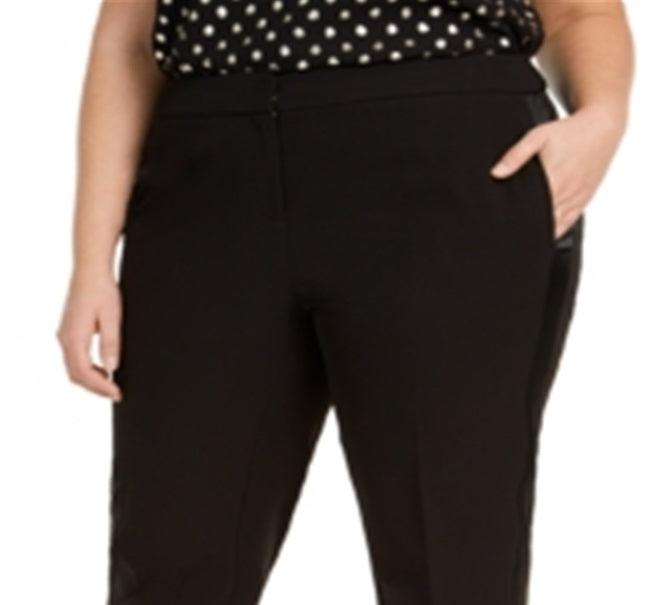 Bar III Women's Trendy Plus Tuxedo Satin-Stripe Straight-Leg Pants Black Size 14W
