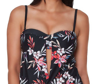 Bar III Women's Floral Print Tankini Top Swimsuit Black Size Large