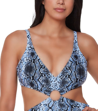 Bar III Women's Slitherin Ring Front Bikini Top Swimsuit Blue