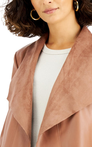 Bar III Women's Faux Leather Flyaway Jacket Brown Size X-Small
