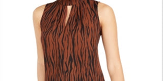 Bar III Women's Animal Print Mock Neck Keyhole Top Brown Size Small