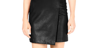 Bar III Women's Faux-Leather Skirt Black Black Size XXS