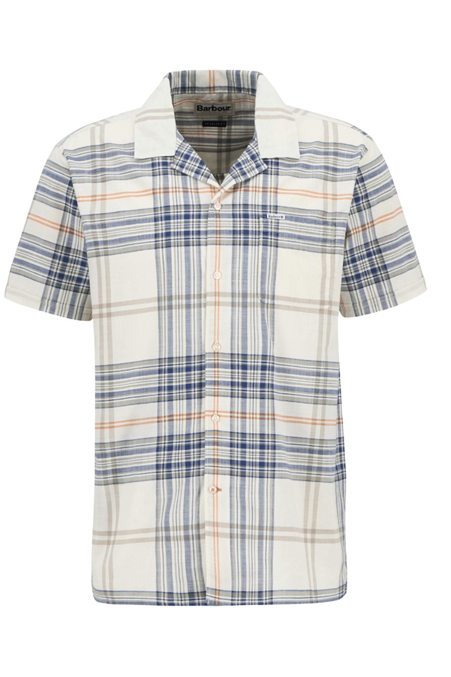 Introducing the Barbour Berryfell Summer Checked Fit Shirt, an ideal choice for a stylish spring dinner party. This men's casual button-down features short sleeves and a revere collar, showcasing a maximalist large scale highland check pattern in a multicolor design. Crafted from 100% cotton with a single 40's slub weave and a soft finish, this shirt delivers comfort and style. Originating from Barbour, it includes a button closure and a branded label on the top left chest pocket. Care instructions recommend machine washing to maintain its quality.