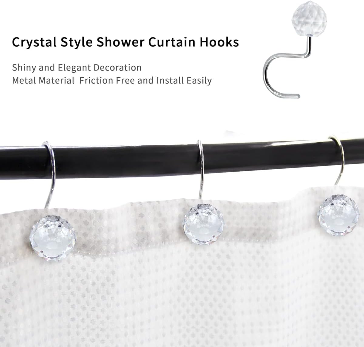 Metal Smooth gliding - Engineered spherical roller balls of shower curtain hooks can glide smoothly and fast across shower rod. Double hooks design - The double roller glide shower hooks are strong enough to hold up shower curtain and shower liner. High quality metal - These double glided shower curtain rings are made of high quality and selected metal, which is resistant to rust effectively. Plated & polished - Coating is plated and polished on cover of double sided shower curtain hooks to be used as elegant decor to your bathroom. Set of 12 - Sold as a set of 12 shower curtain rings. J&V TEXTILES shower curtain hooks meets most of quantity demands for one usual bathroom.