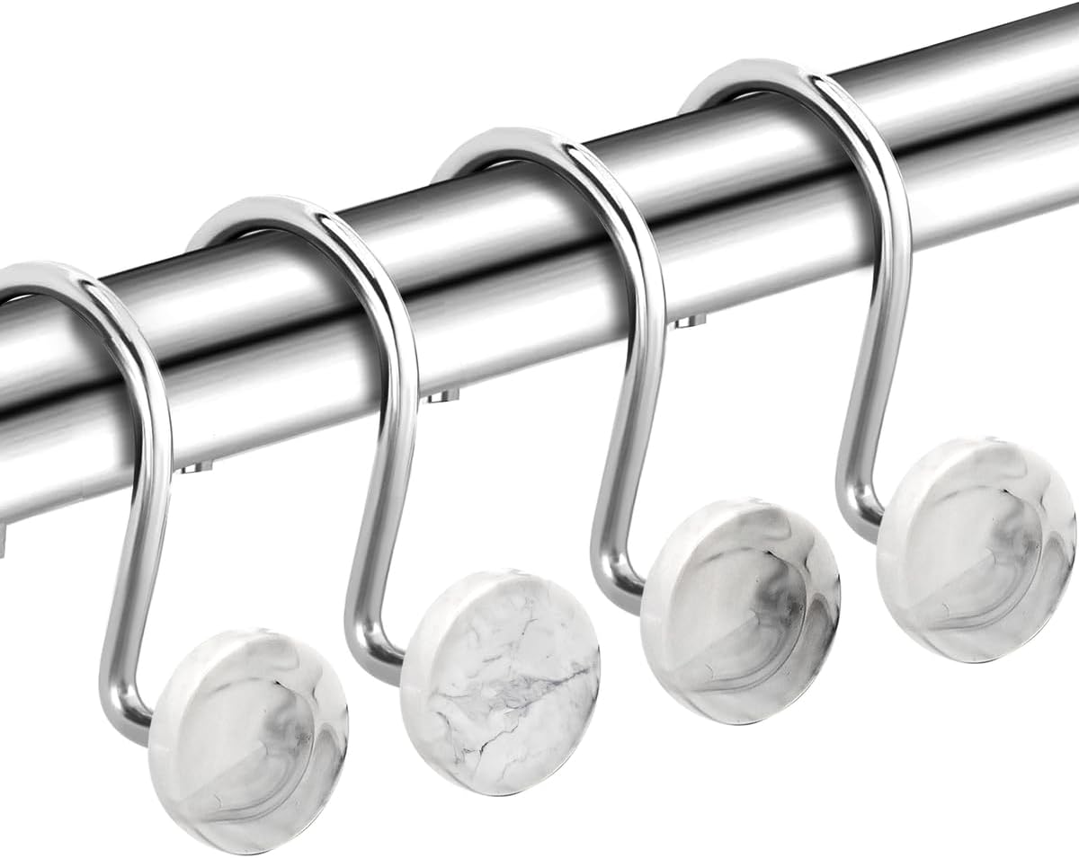 Set of 12 Rust Resistant Shower Curtain Hooks - 6 Designs!
