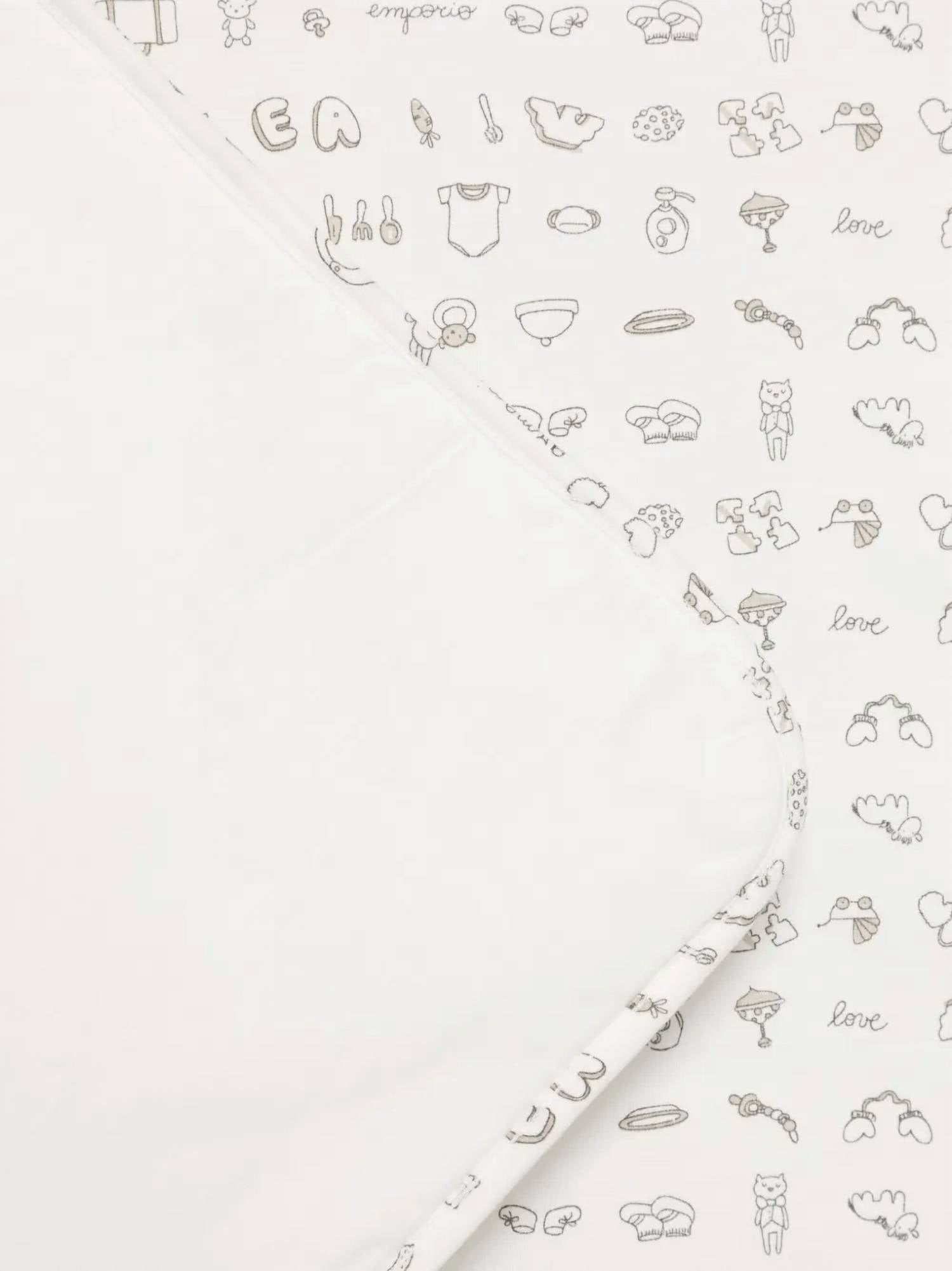 Wrap your little one in the ARMANI Graphic Print Blanket, a cozy and stylish choice in a soothing white hue. Crafted from cotton, this baby blanket boasts a padded design with a charming all-over graphic print, ensuring comfort and cuteness. It features a full lining and a square shape with dimensions of 29.52 inches in length and 25.59 inches in width. For easy care, simply machine wash and tumble dry.