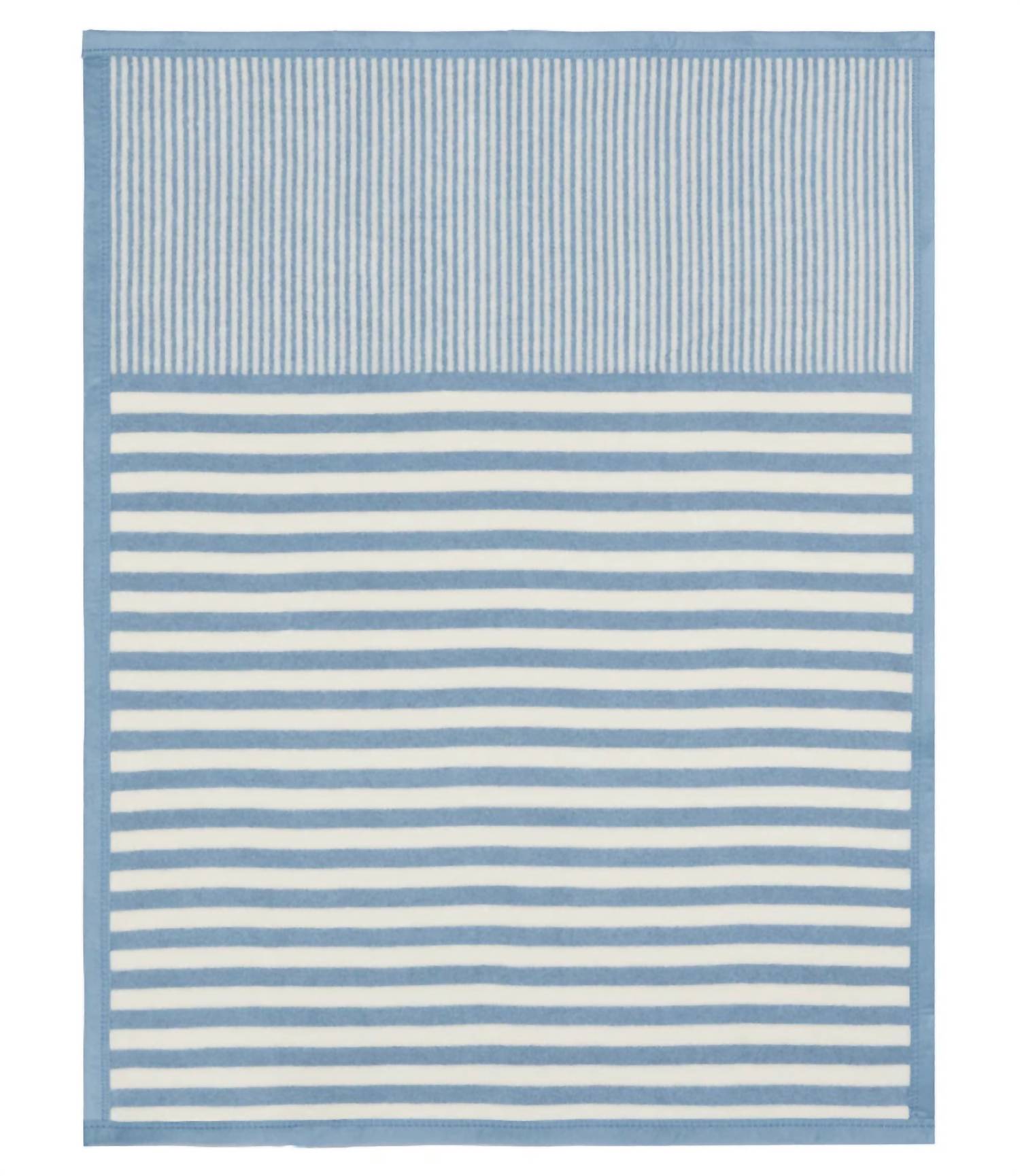 Wrap your baby in luxury with the Striped Stroller Blanket by ChappyWrap, weaving cozy comfort in a captivating shade of blue. Expertly Jacquard-woven, this blanket boasts an ultra-soft composition of 58% cotton, 35% acrylic, and 7% polyester, offering a delightful reversible design. Measuring 30" x 40", it features colors of navy and ivory in charming stripes. Care is simple with machine wash and tumble dry, ensuring this blanket is as practical as it is beautiful, remaining resistant to shrinking, pilling, and fuzz. Perfect for a baby's stroller, it's an essential that combines quality with style.