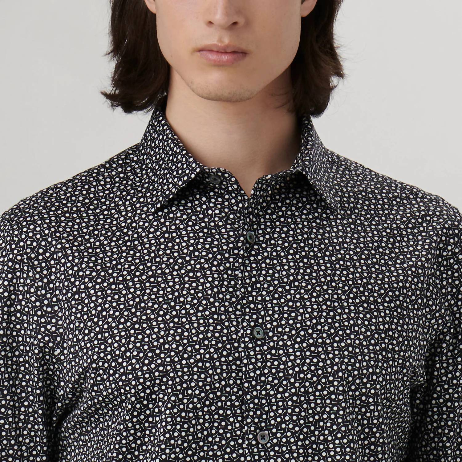 The James Nail & Tack Print Shirt by Bugatchi Uomo is a sophisticated addition to any wardrobe with its long sleeves and distinctive point collar. Crafted from a luxurious blend of 92% Cotton and 8% Spandex, this shirt offers unmatched comfort and ease with its wrinkle-resistant, 8-way stretch, and thermal comfort features. With full button closure and a durable, breathable fabric, it's perfect for both office and engagement settings. Experience effortless style with its easy-care routine—simply machine wash and tumble dry—while enjoying the refined design of imported craftsmanship. Model is 6'1" and wears a size M.
