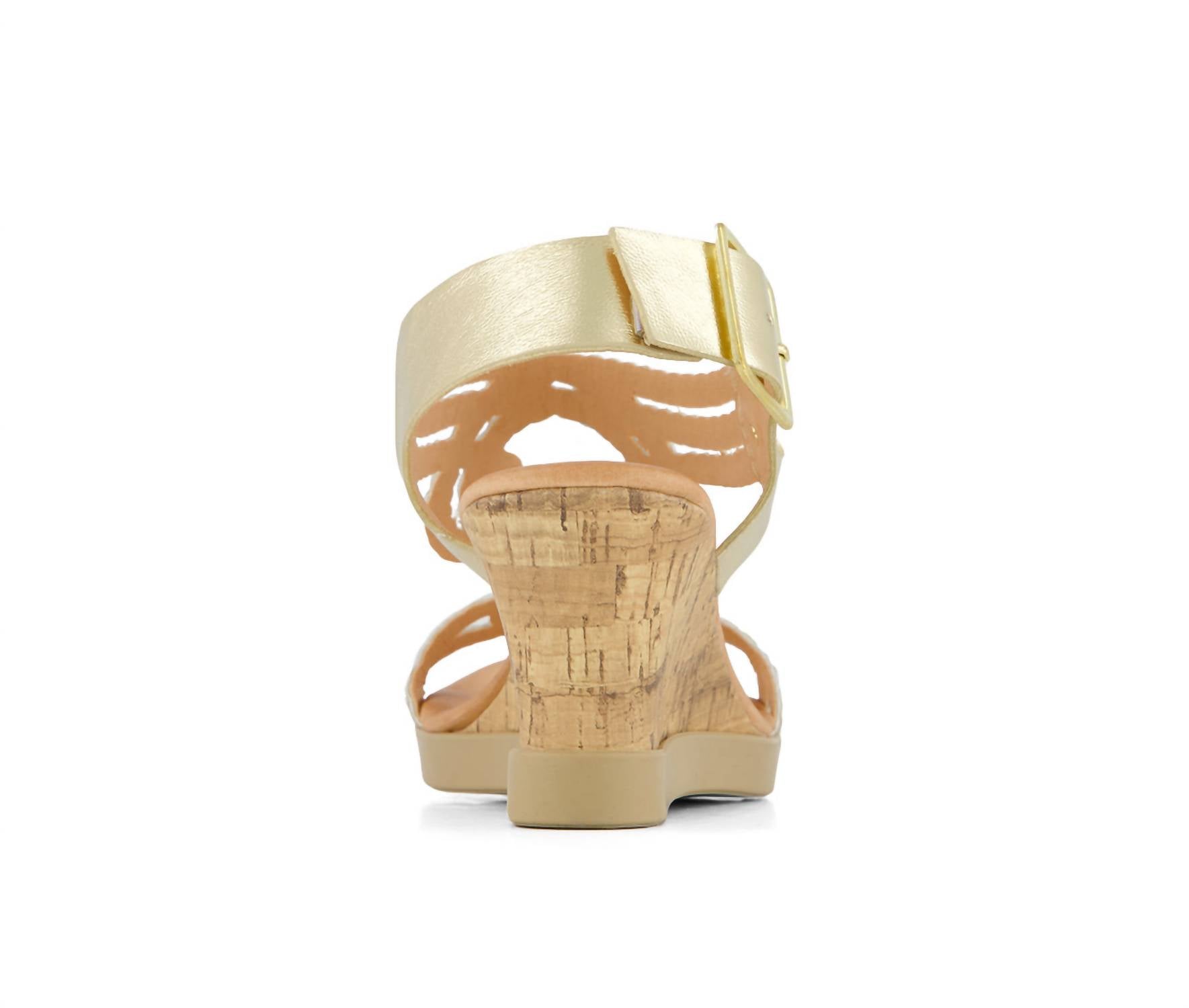 Dresses, denim, shorts... these wedges go with just about anything. Step into elegance with the Women's Wedge Casual Comfort Ankle Strap Sandals by Andrea, crafted in a striking gold tone to elevate your evening ensemble. These stylish sandals feature an open toe design and a wedge heel with a height of 2 inches, perfect for workwear or evening events. Made from high-quality nylon, they boast a foam-padded insole for everyday comfort and an anti-slip outsole for assured stability. Closure: Convenient buckle closure for a customizable fit. Ideal for adult women looking to combine style and comfort in their footwear.