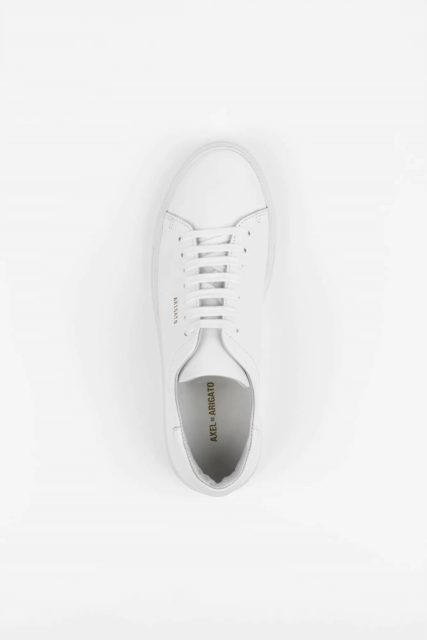Introducing the Men's Clean 90 Sneaker by Axel, a stylish white footwear choice ideal for summer vacations. Crafted from 100% leather, these sneakers boast a removable cushioned footbed for ultimate comfort and support. The design features a 1.18" rubber sole, perfectly complementing the round toe and flat heel style. Embrace the 90s fashion trend with these versatile sneakers.
