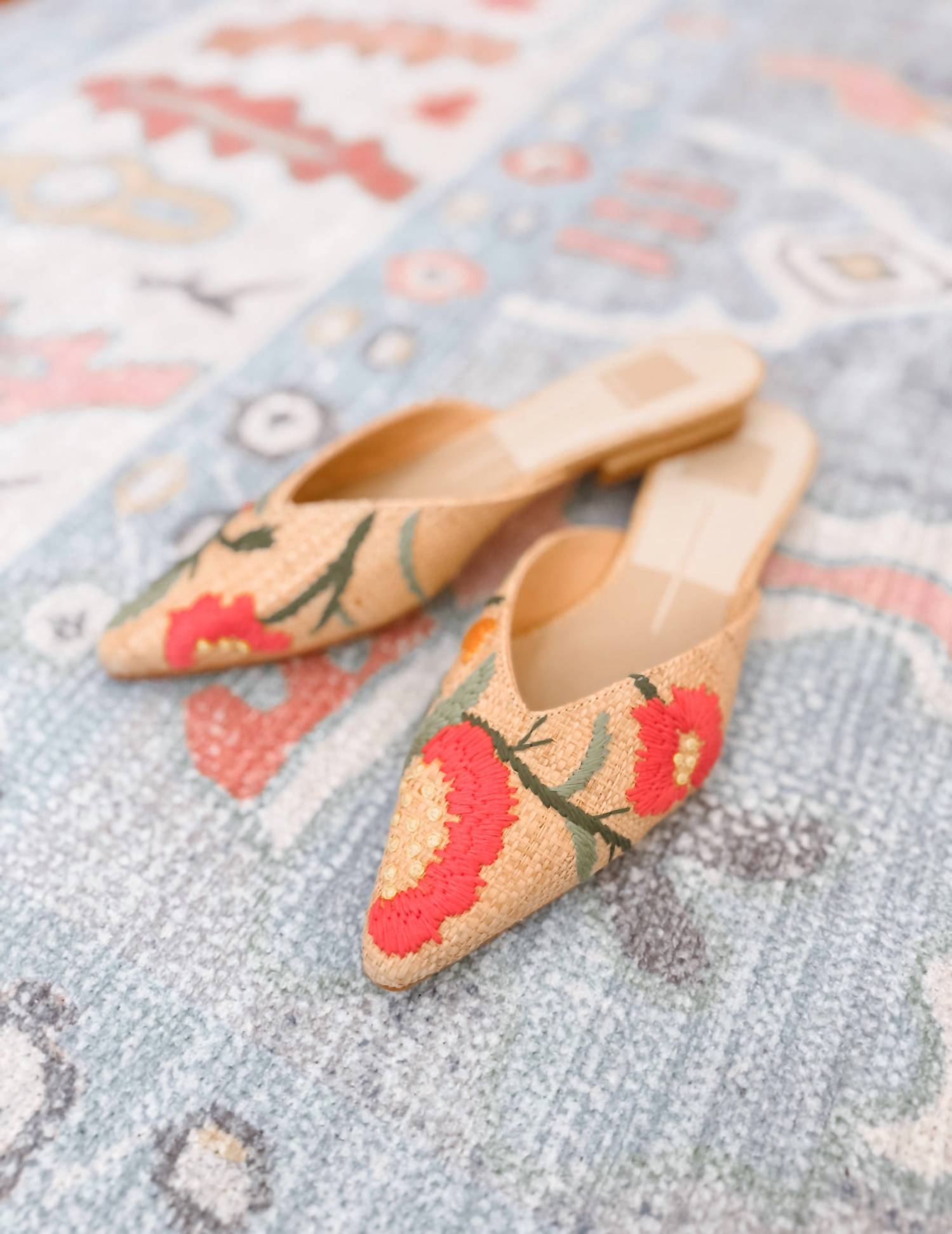 A trend that everyone is loving and this style might just be our favorite. Step into spring with the Women's Elm Pointed-toe Mule by Dolce Vita, a true statement piece. This on-trend mule, available in Floral Multi, features a vibrant textile upper intricately adorned with blooming florals. Crafted from recycled materials, it comes with a recycled synthetic outsole and lining, paired with a water-based leather alternative sock. With its elegant pointed toe and a subtly stylish 0.6" flat heel, these imported mules are perfect for effortlessly completing your boho chic vacation looks.