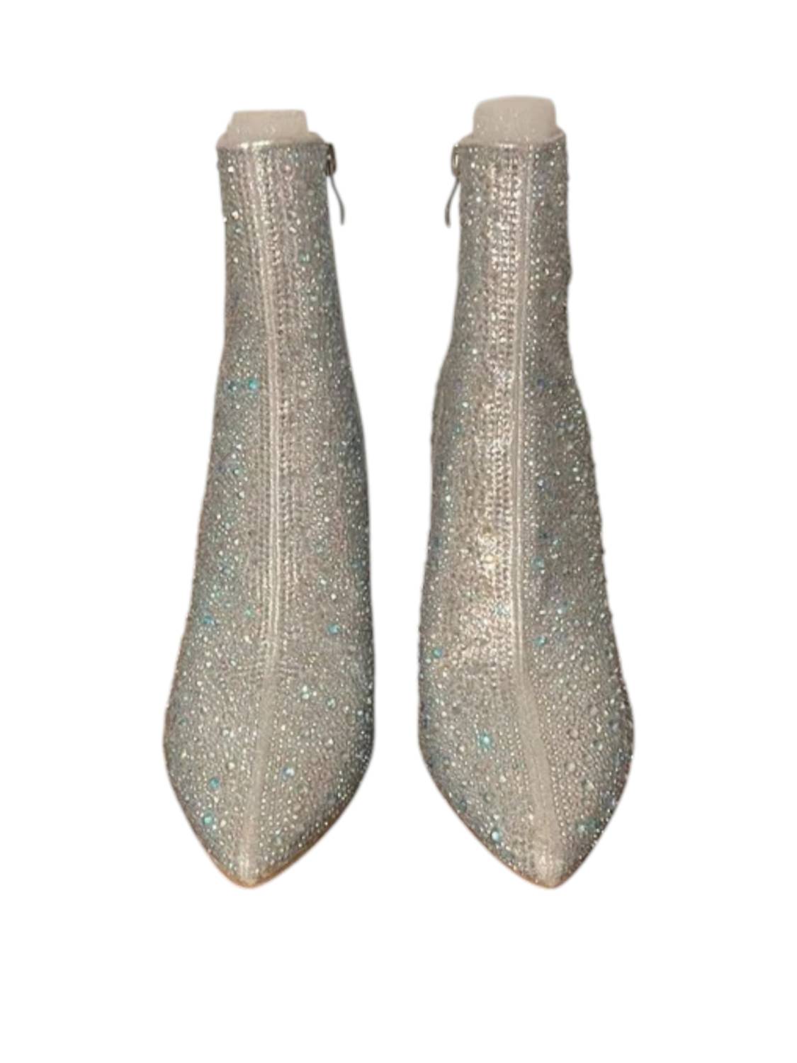 Step out in confidence and showcase your impeccable taste with these fashionable and versatile boots. Their classic style will have you reaching for these boots season after season. Step into the spotlight with the Women's Shine Bright Booties from Jess Lea, a dazzling choice for concert-goers and trendsetters. With a high heel measuring 4 inches, these booties feature a block heel and a pointed toe for a chic, modern look. Available in eye-catching silver, they come in whole sizes 6-11 and are true to size. The cushioned footbed ensures comfort with every stride, making these Y2K-inspired booties a fall wardrobe essential.