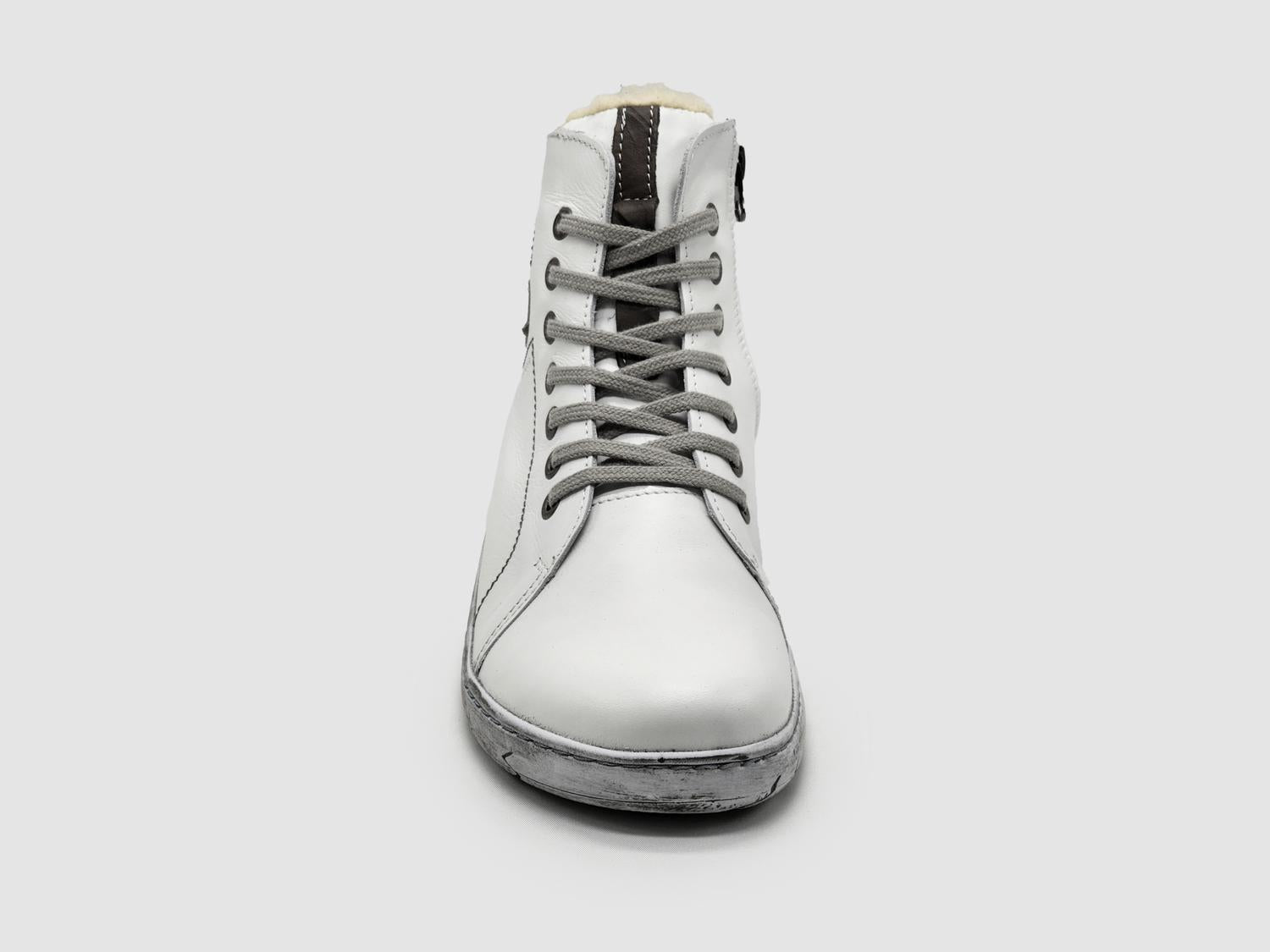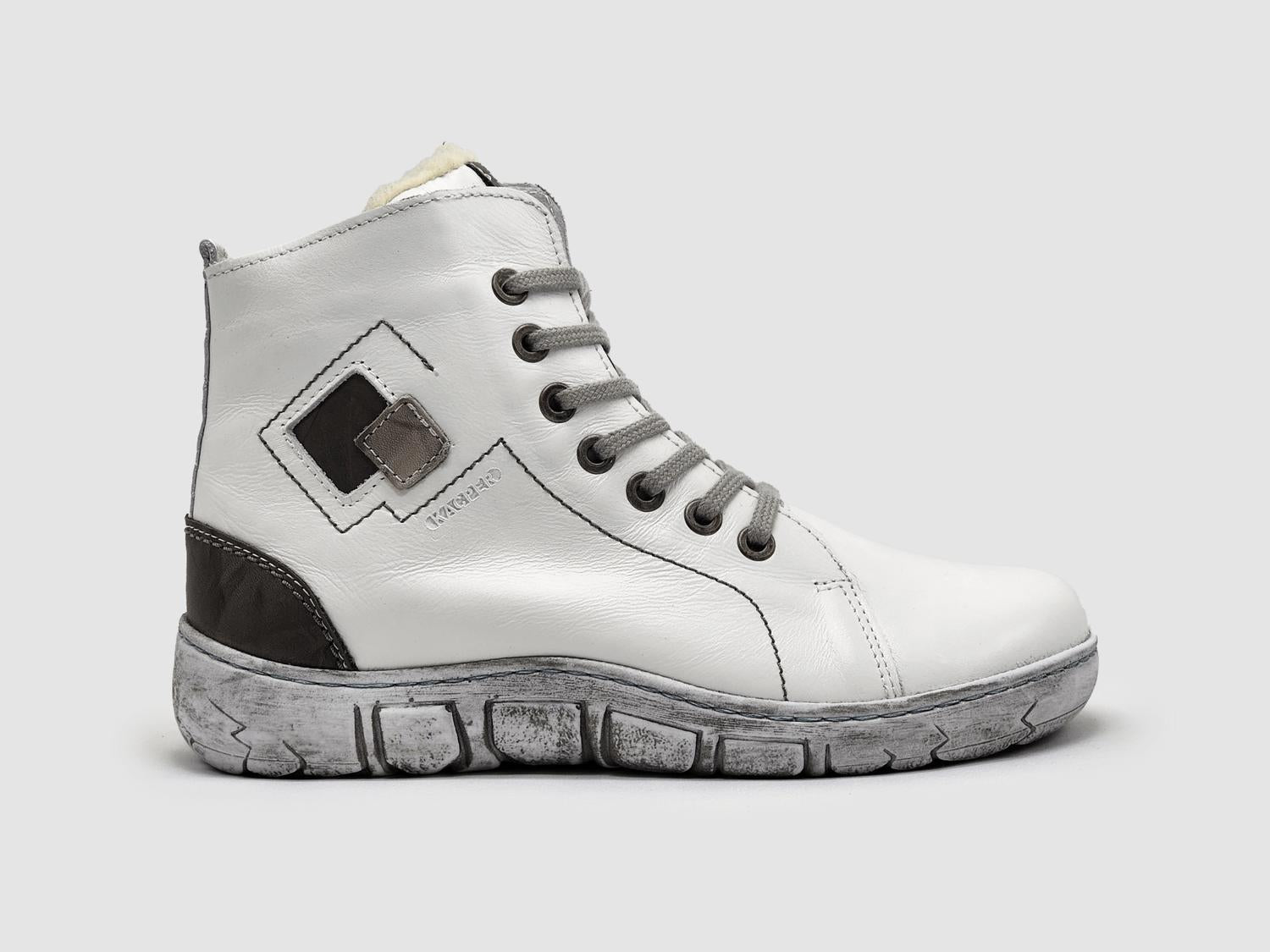 Discover the Women's Original Thick Leather Boots by KCR Group in a standout white color, perfect for travel and streetwear enthusiasts. Designed for women with a preference for wide fit, these winter boots feature a low platform heel, crafted with soft yet structured leather. The boots are lined with plush wool for warmth, complete with a convenient side zipper for easy wear. Ideal for facing winter's chill, they promise lasting comfort, reliable support, and ease of movement.