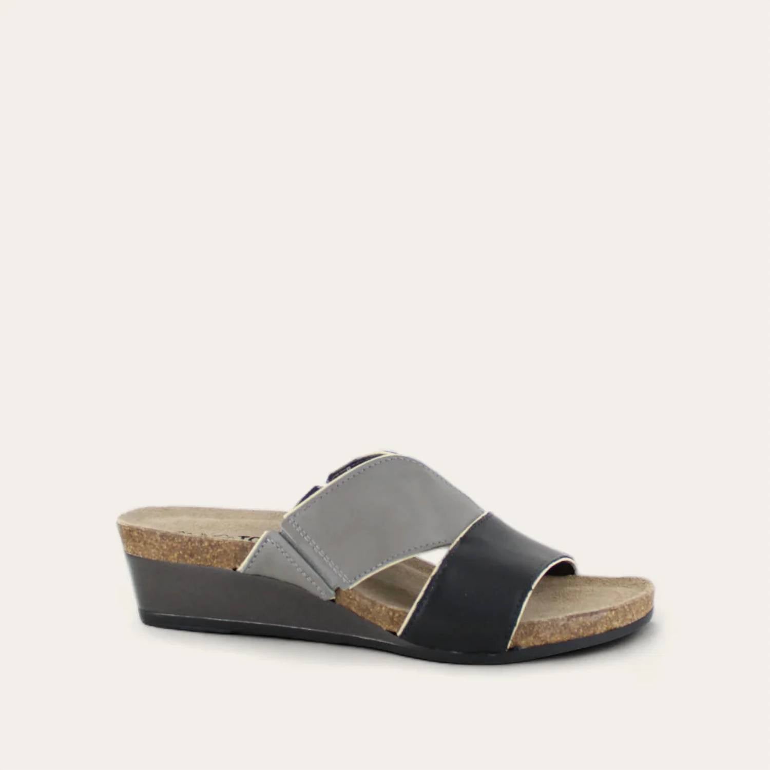 With its modern wedge heel and polished strap design, Tiara is exceptionally comfortable. It features double gore for extra adjustability. Naot's anatomic cork and latex footbed is wrapped in a pampering suede and molds to the shape of the foot with wear.