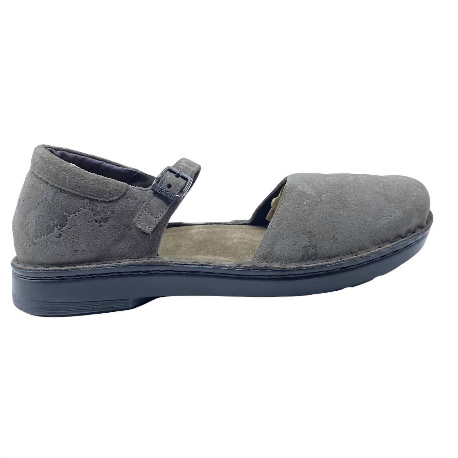 Experience comfort in NAOT's Women's Catania Shoes, made from premium grey marble suede. With a 3.18 cm low block heel and a wide fit, these slip-resistant mules offer stability and comfort. Featuring a removable orthotic-friendly footbed, they're ideal for any occasion, blending style with practicality.
