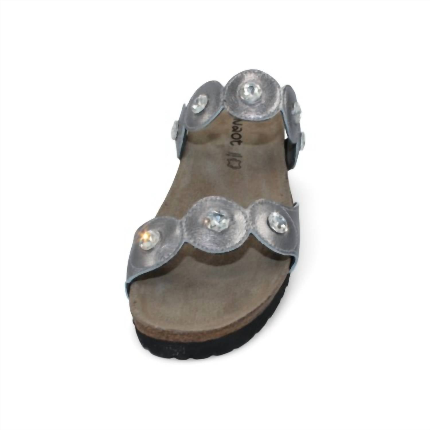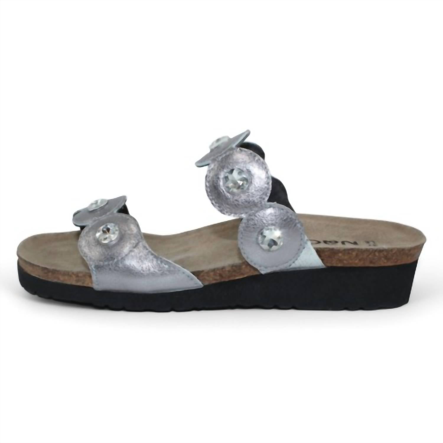 Introducing the Women's Hailey Sandal by NAOT, a perfect blend of comfort and elegance in Dark Pewter. These slide sandals feature a stylish open toe design and are crafted from high-quality leather. Designed with Naot's anatomic cork & latex footbed, wrapped in pampering suede, they mold to your foot for personalized comfort and are APMA-accepted for promoting good foot health. With a flat heel under 1 inch and a 1.5" EVA sole, they are the ideal choice for a summer vacation.
