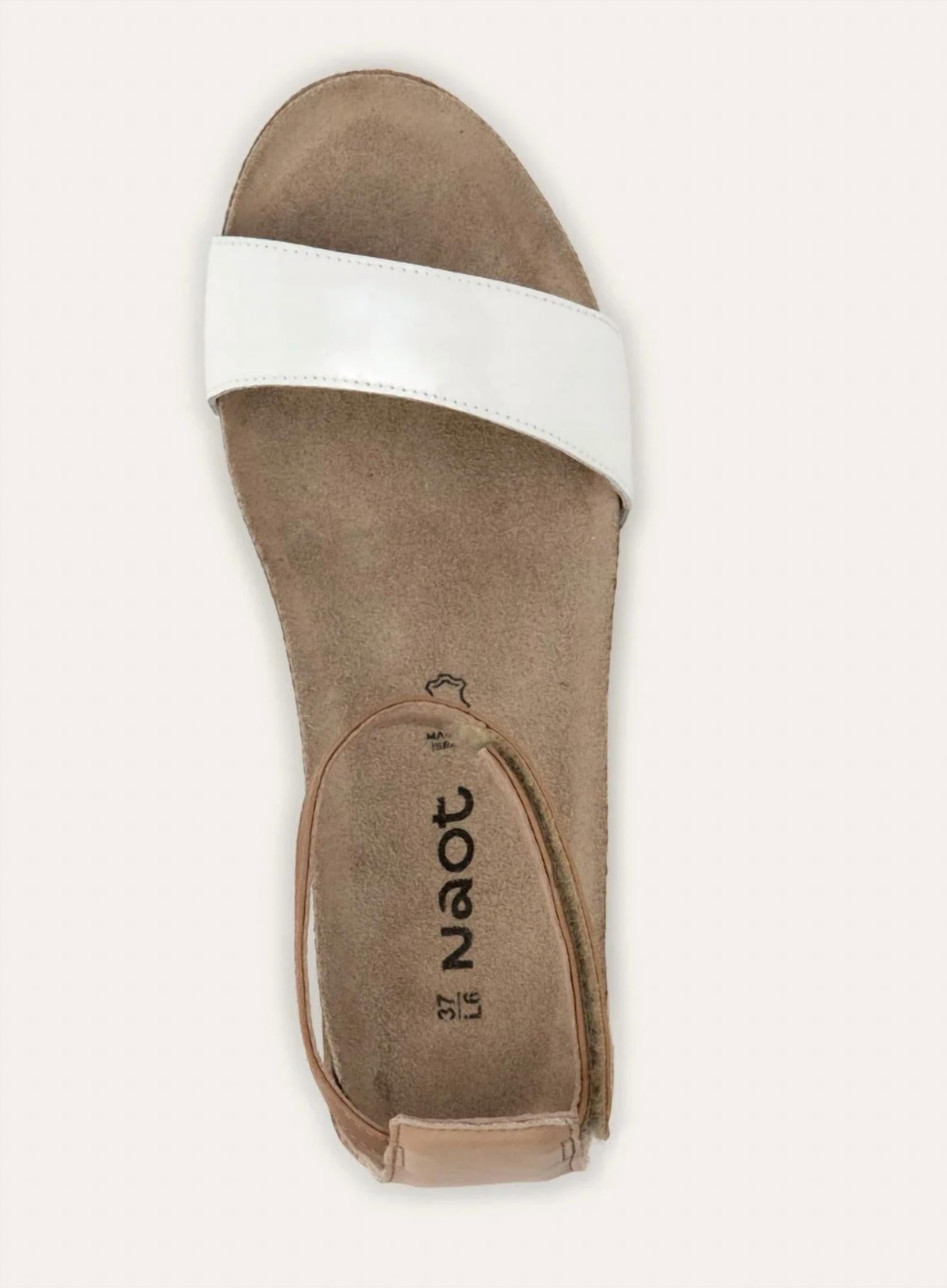 Classicly cute and all-day-wearable. We love this sandal. Step into elegance with the NAOT Women's Porcelain Sandal in a sophisticated Ivory/Latte colorway. Featuring premium leather and a convenient hook and loop closure, these wedge sandals offer both style and support with a 1.75" heel. The anatomic cork and latex footbed is wrapped in suede, providing personalized comfort that molds to your foot over time. Perfect for summer vacations, these sandals blend boho chic trends with a narrow to medium width fit, ensuring both fashion and comfort under the sun.