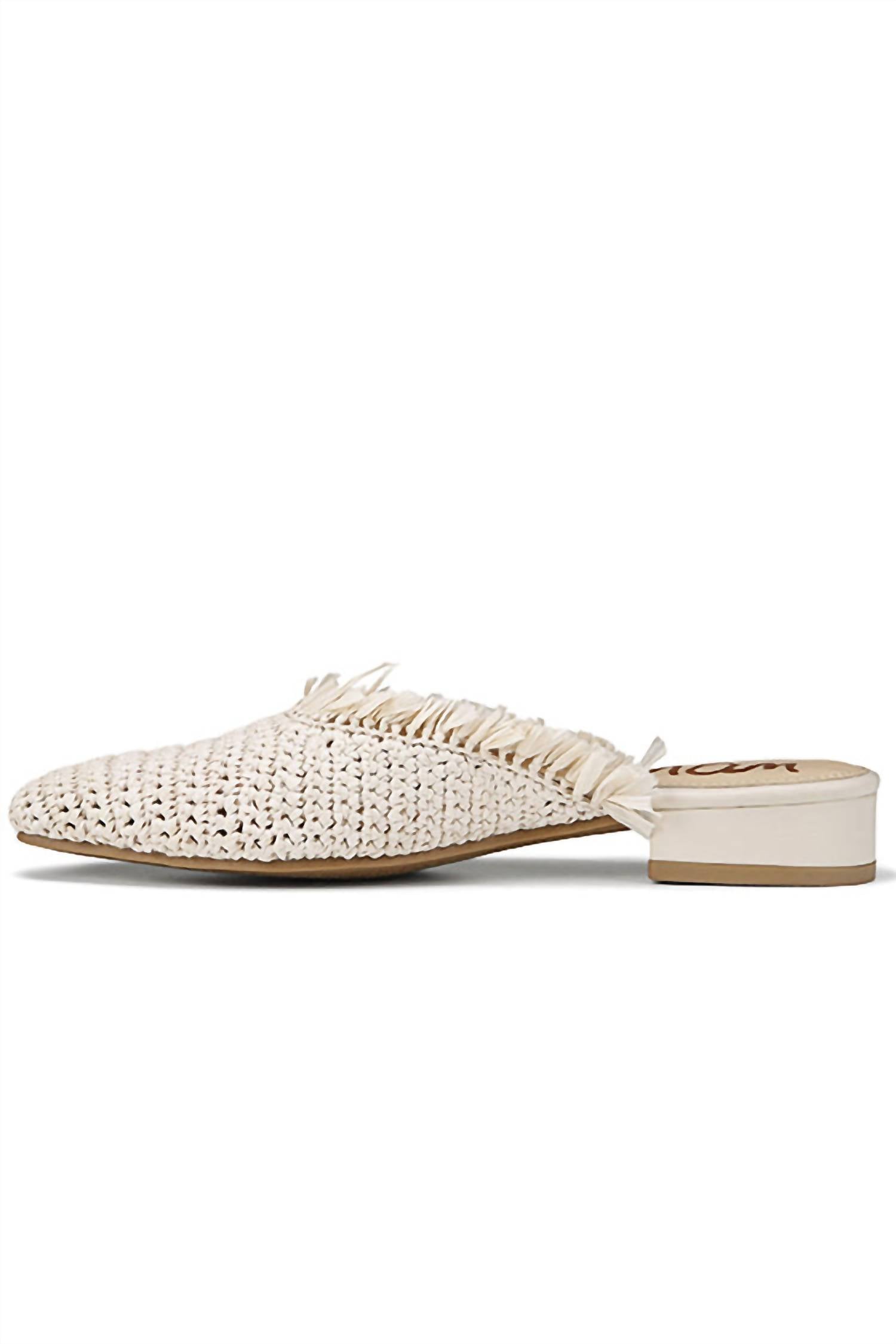 Loafers so versatile you can wear them with just about anything. Step into style with the Reeta Slip-on Mule by Sam Edelman, tailored for women who appreciate both form and function. These off-white mules feature a pointed toe and a low 1.3-inch block heel, perfect for those seeking comfort with a touch of elegance. Crafted from a mix of fabric and other materials, the design embraces a woven flair with frayed edges. Ideal for springtime adventures, whether it's a casual stroll or a vacation getaway.