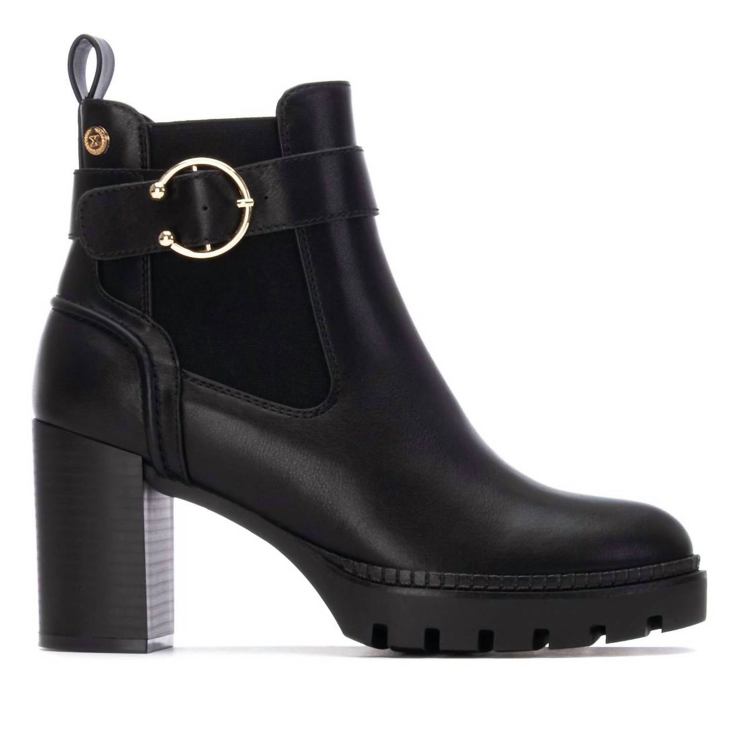 Say hello to the perfect, most versatile boot. The ankle height makes this style easily transition from day to night. Wear them with your favorite skinny jeans and tee for a more laid back look, or pair them with your favorite mini dress and jacket for a night out on the town. Elevate your style with the Women's 144521 Block Heeled Booties by Xti, designed for women who refuse to compromise on quality. These sleek black ankle booties are crafted from premium leather, featuring a sophisticated block heel and a medium shoe width for comfortable wear. Their versatile round toe design makes them the perfect choice for both casual outings and elegant dinner parties. Embrace the essence of quiet luxury this summer and step out with confidence.