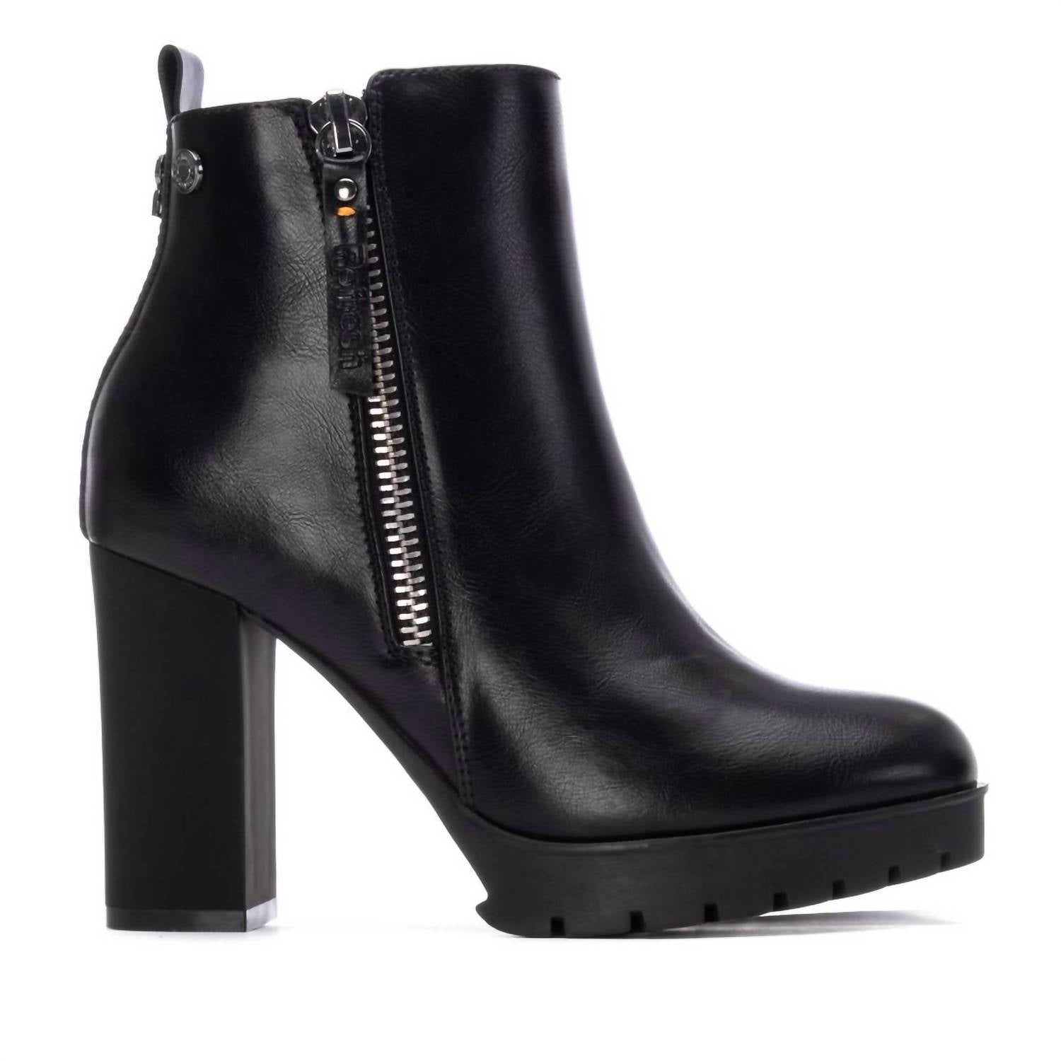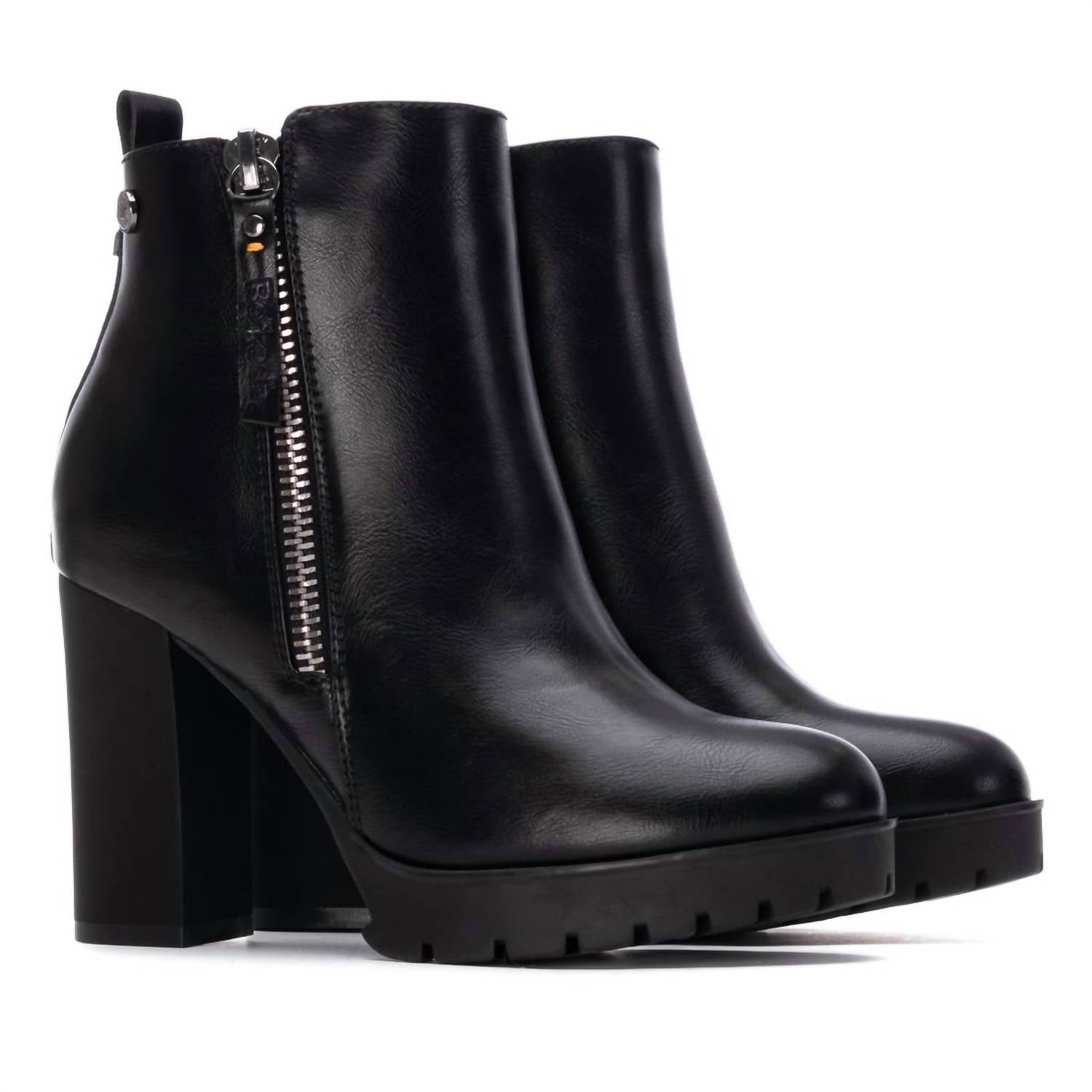 Say hello to the perfect, most versatile boot. The ankle height makes this style easily transition from day to night. Wear them with your favorite skinny jeans and tee for a more laid back look, or pair them with your favorite mini dress and jacket for a night out on the town. Step into quiet luxury with the Xti Women's Refresh 172929 Booties, crafted for style and comfort. These black ankle booties feature a sophisticated block heel and a timeless round toe shape, making them perfect for any dinner party setting. Whether for a casual spring outing or a special occasion, these booties complement any ensemble with elegance. Ideal for the discerning woman who appreciates quality and refined aesthetics.