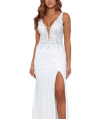 Betsy & Adam Women's V Neck Lace Gown White Size 6
