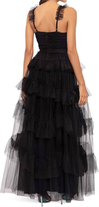 Betsy & Adam - Gigi Long Ruffle Mesh Dress