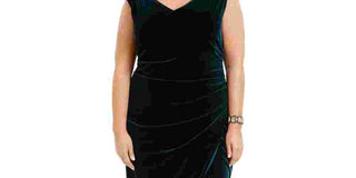 Betsy & Adam Women's Plus Ruched Velvet Gown Green Size 14W
