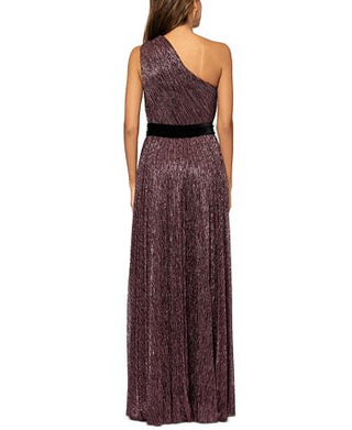 Betsy & Adam Women's One-Shoulder Tie Waist Metallic Gown Pink Size 8