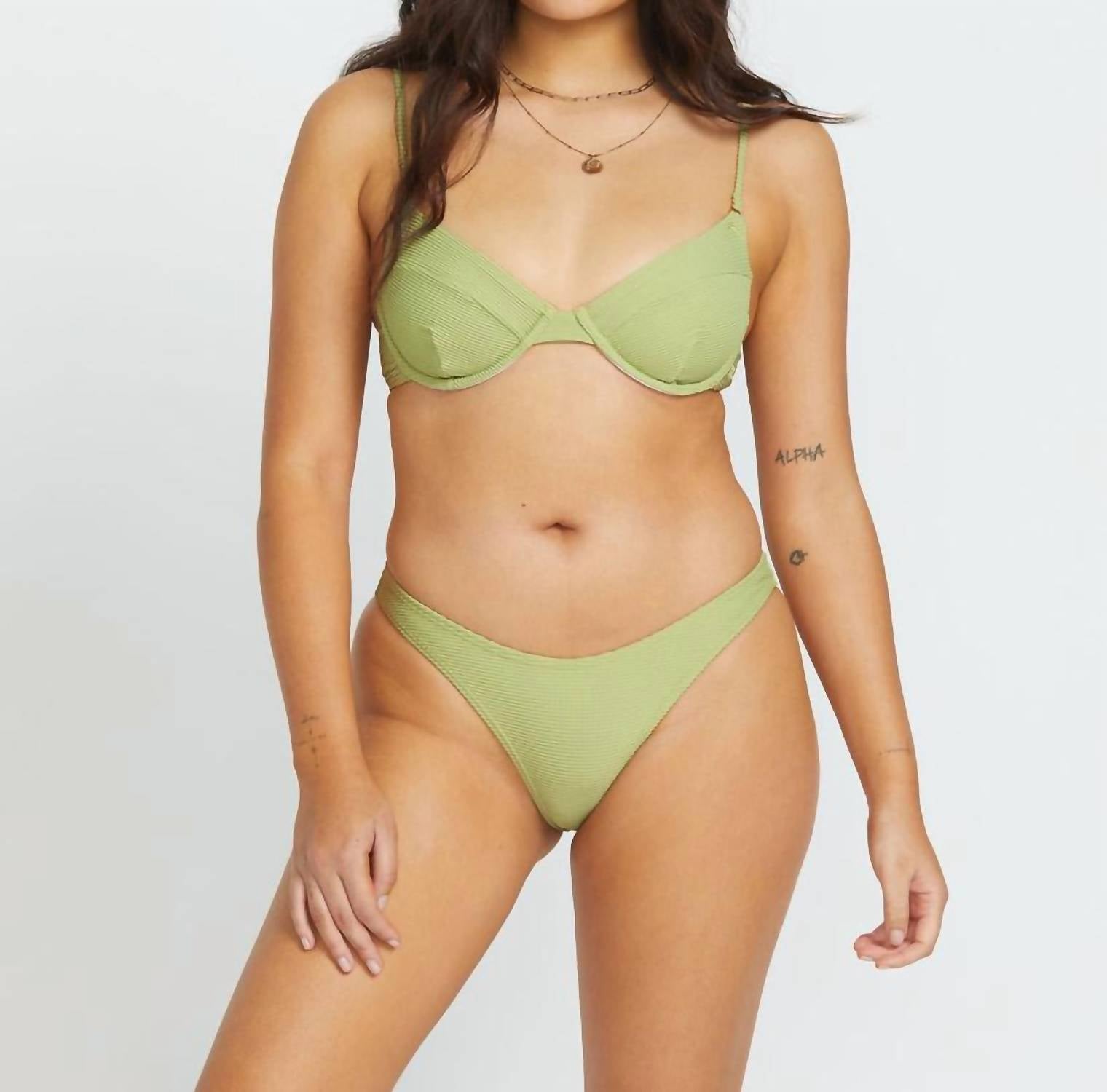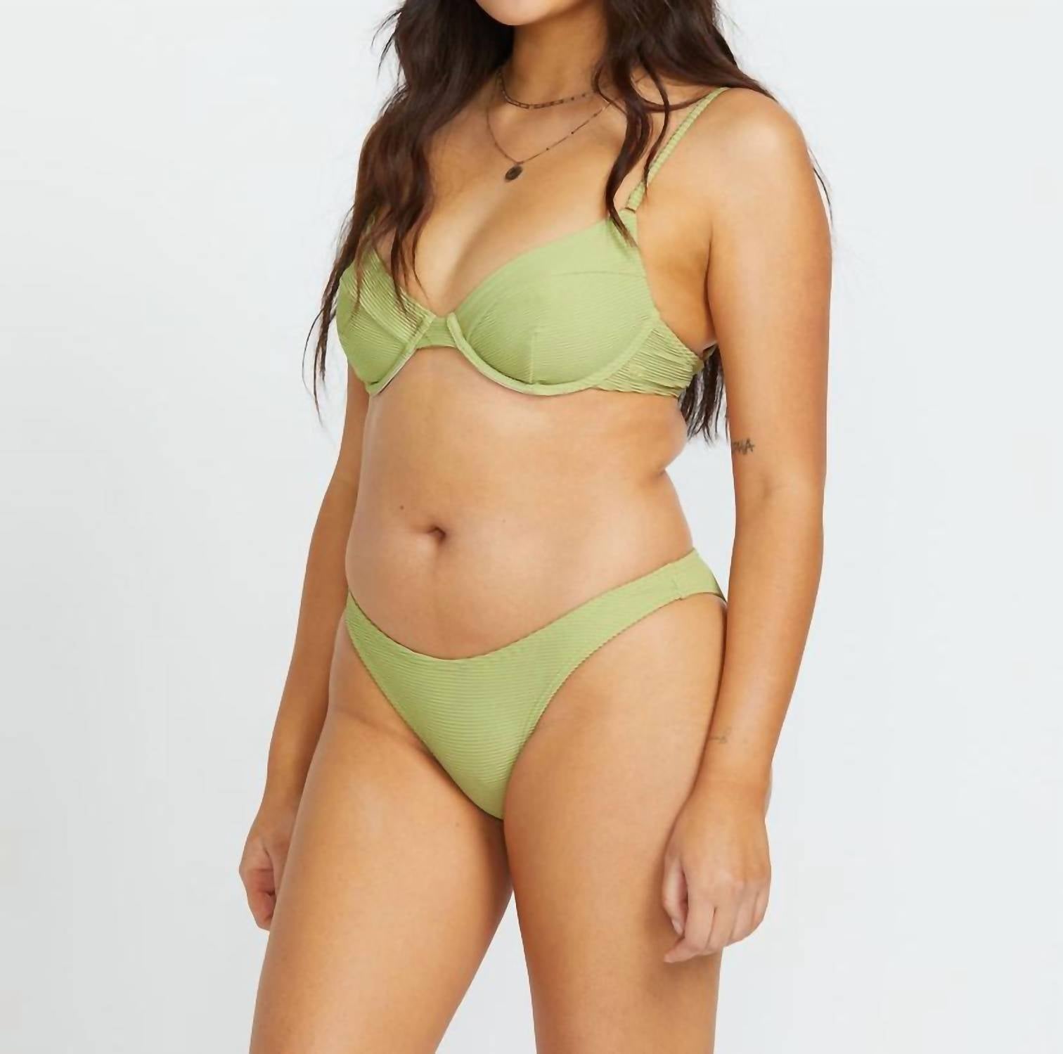 Dream of your next beach getaway in this cute little number. Pair with strappy sandals, a floppy hat, and an oversized tote to complete the perfect vacation look. Introducing the Tanlines Hike Bikini Bottom by Billabong, a stylish choice for your summer adventures. Designed with medium coverage, these swim bottoms feature a playful avocado print that's perfect for the beach or the trails. Crafted from 91% recycled polyester and 9% elastane in a textured rib material. Embrace minimalist style with this essential bikini bottom for any beach day.