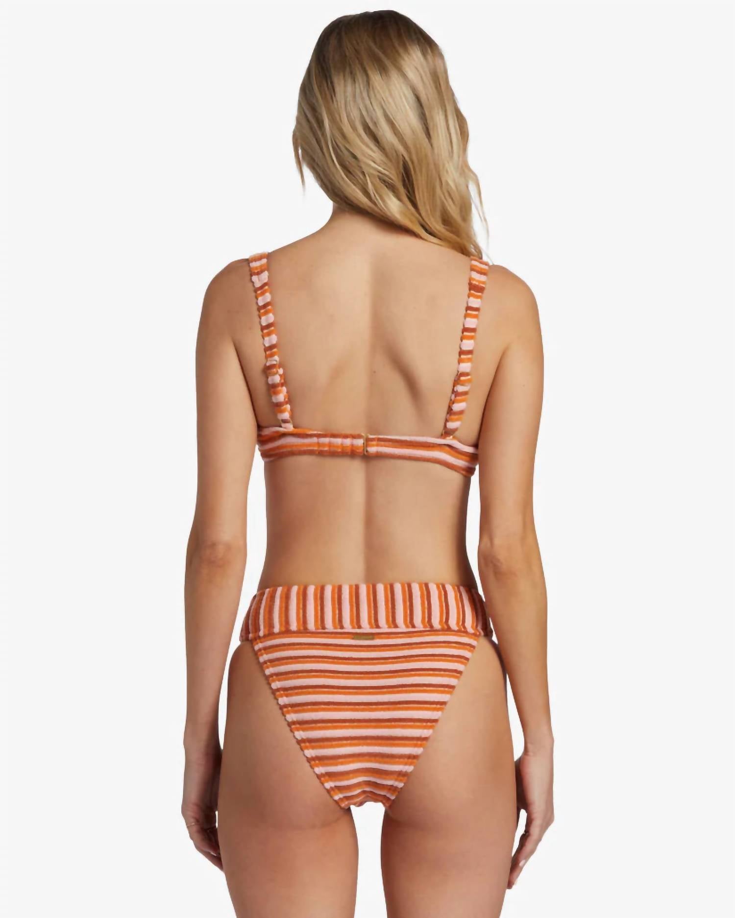 Dream of your next beach getaway in this cute little number. Pair with strappy sandals, a floppy hat, and an oversized tote to complete the perfect vacation look. Introducing the Tides Terry Aruba Bikini Bottom by Billabong, a stylish addition to any summer wardrobe in vibrant orange. These cheeky high-waisted bikini bottoms feature a striped polyester fabric inspired by the 1970s with a flattering wide waistband and high-rise leg design. Ideal for beach days, this minimalist swim bottom promises both comfort and standout style. Note: Care instructions are not specified.