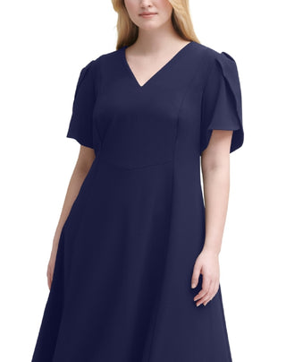 Calvin Klein Women's Tulip Sleeve Midi Dress Blue Size 18W