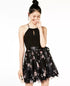 Approx. 35-1/2 long from center back neck to hem. Length is based on size 7 and varies 1/4 between sizes|Halter neckline with keyhole; Fit & flare silhouette|Back zipper closure|Molded cups; self-tie bow around waistline; belt loops at sides; glitter embellishment on skirt|IMPORTANT NOTE; This item arrives with a return tag attached and instructions for removal. Once the tag is removed from the dress; this item cannot be returned.