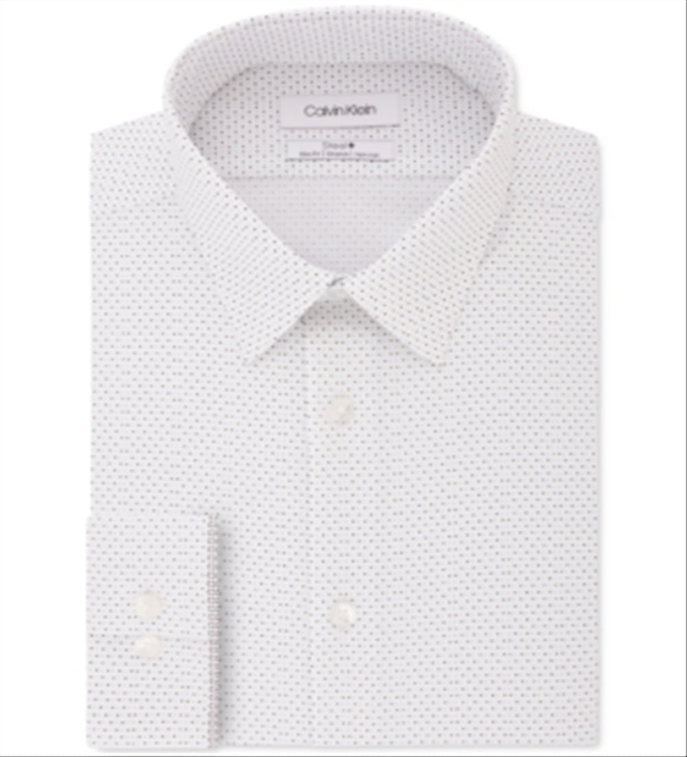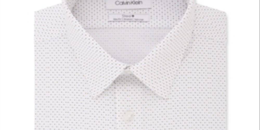 Calvin Klein Men's Dot Print Slim Fit Dress Shirt White Size XL