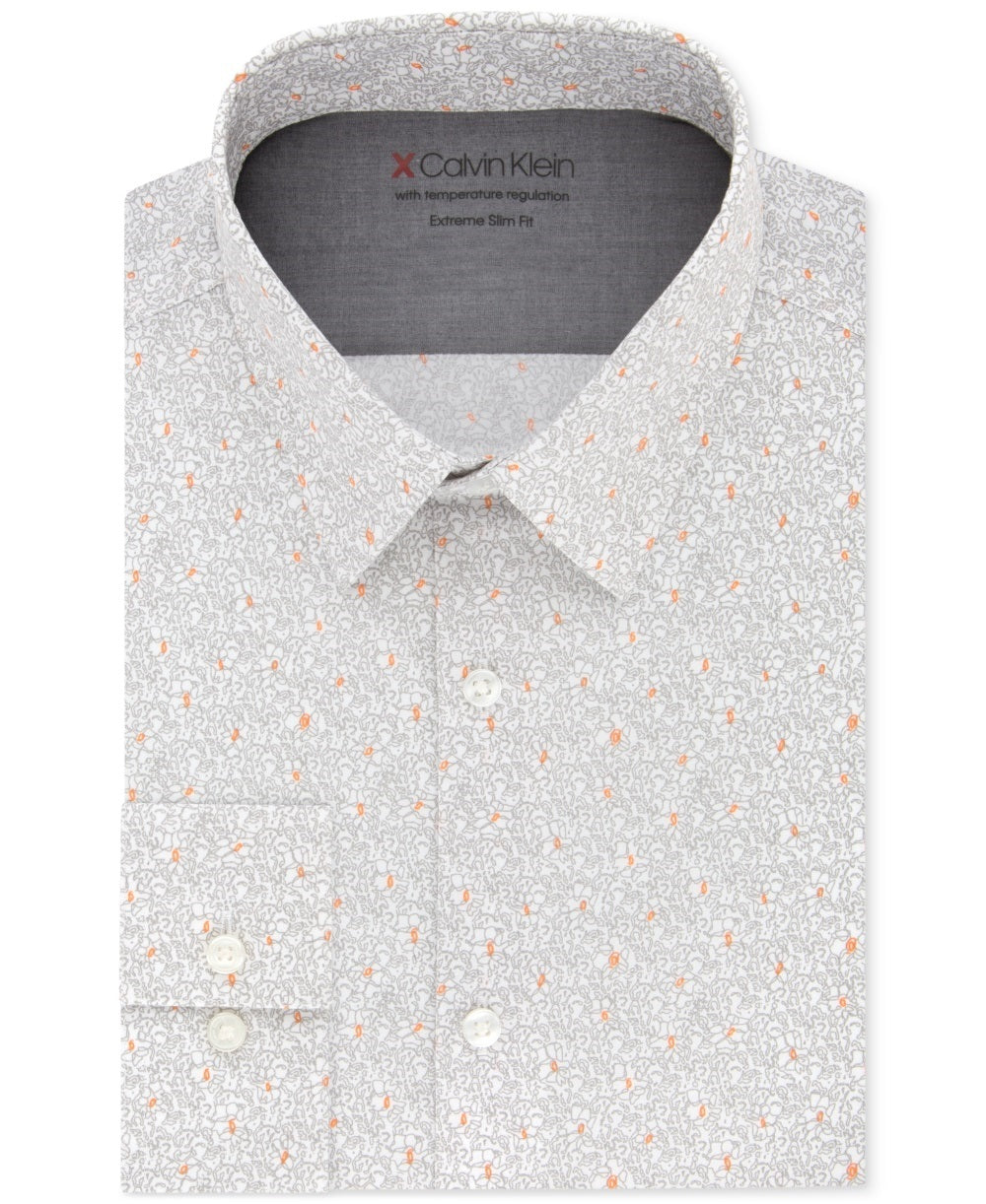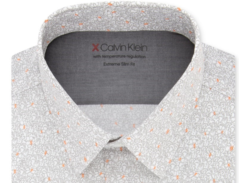 An extra-slim fit is cut close through the chest, sleeves and waist for the slimmest fit; features slim armholes and sleeves|Spread collar|Thermal technology adapts to both the environment and your body temperature to keep you comfortable; Stretch fabric for a full range of movement|Cotton/polyester/elastane|Machine washable|Imported