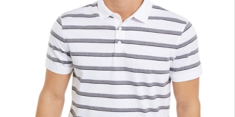 Calvin Klein Men's Liquid Cotton Slim-Fit Stripe Polo Shirt - White Size XS