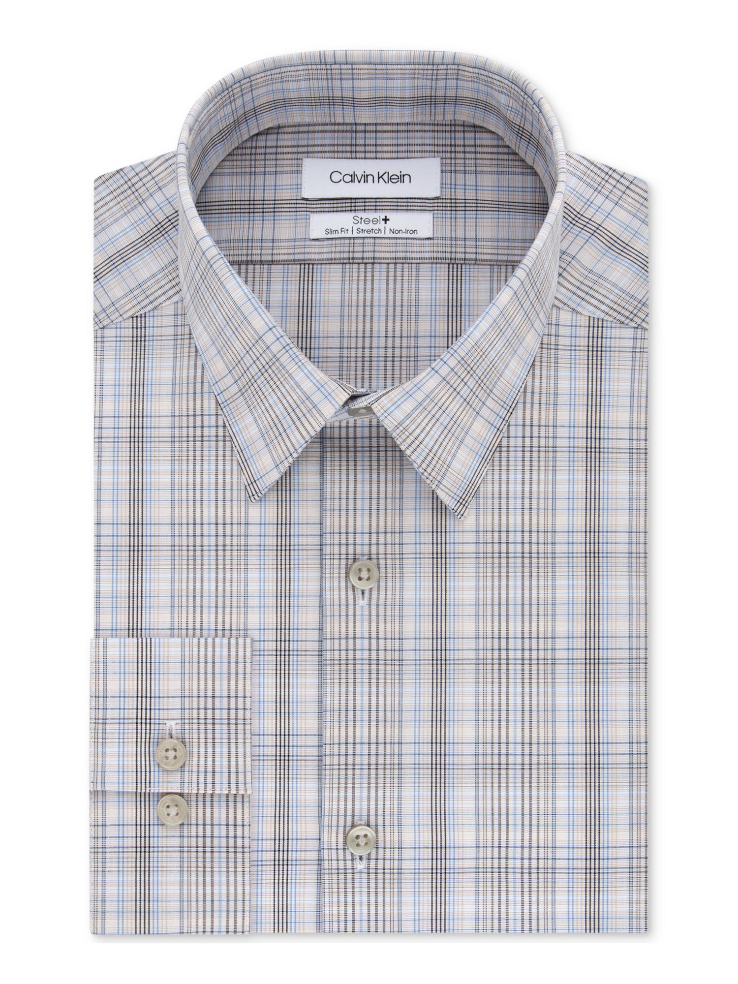 CALVIN KLEIN|Style; Dress Shirt|Occasion; Work|Size; XL 17.5- 36/37|Material; Cotton Blend|Color; Beige|Plaid